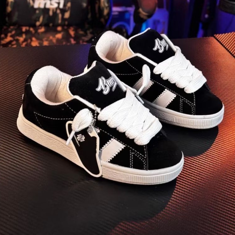 Sepatu Sneaker Skate terbaru SB MARRABBUKA warna full Hitam classik terbaru Sole busa tali lidah gemuk gendut SUEDE lokal terbaru