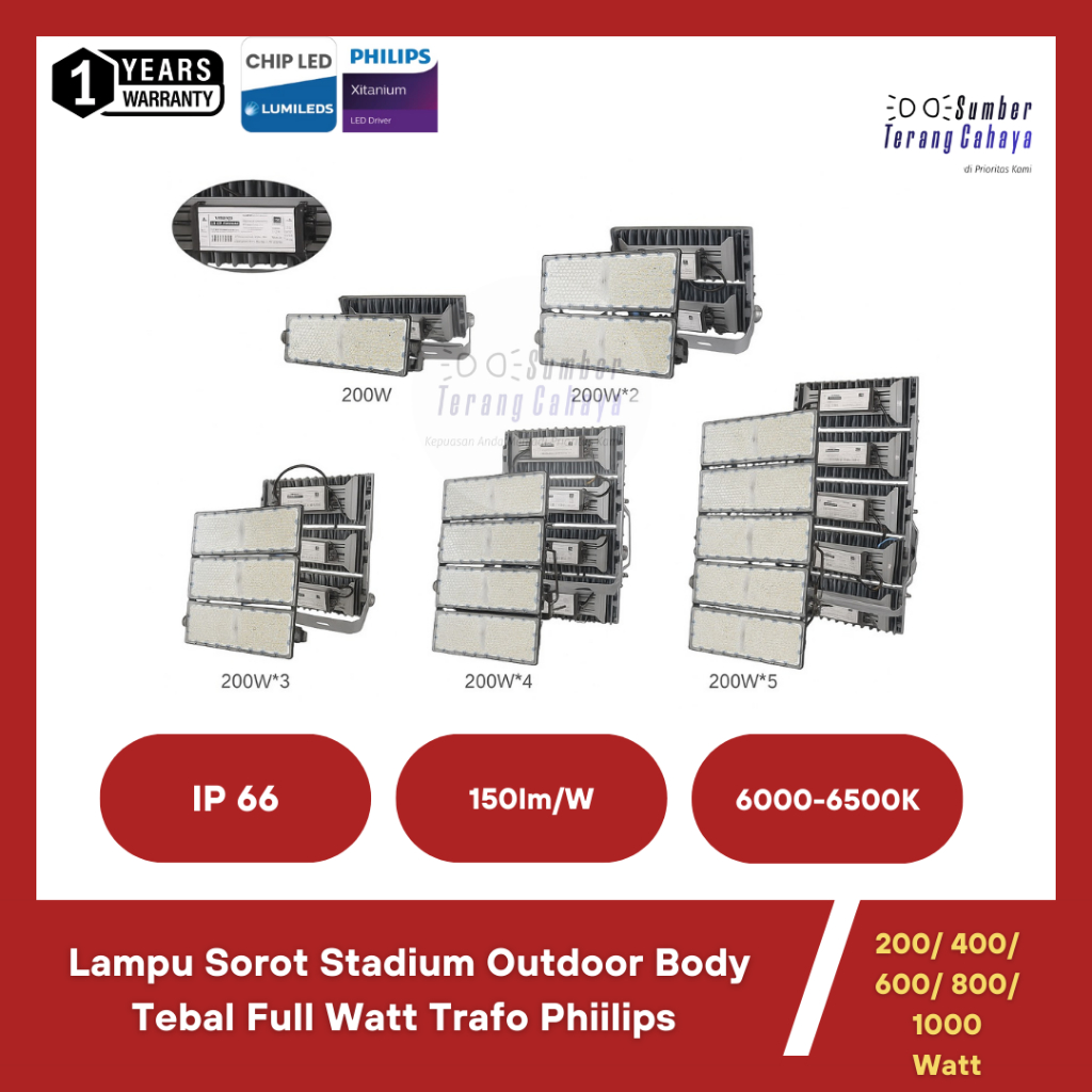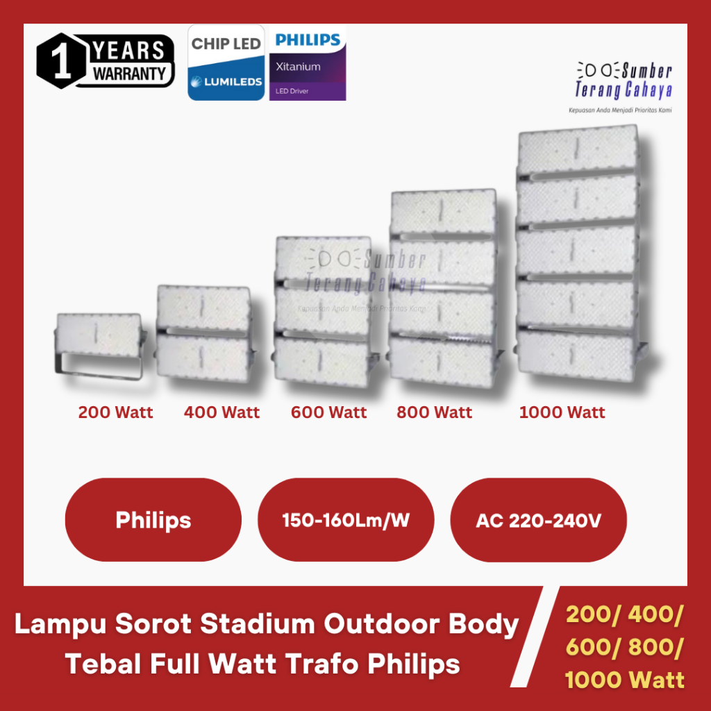 Lampu Sorot Stadium Lapangan Bola Minisoccer Voly Padel Outdoor Body Tebal Full Watt Trafo Phiilips 200/ 400/ 600/ 800/