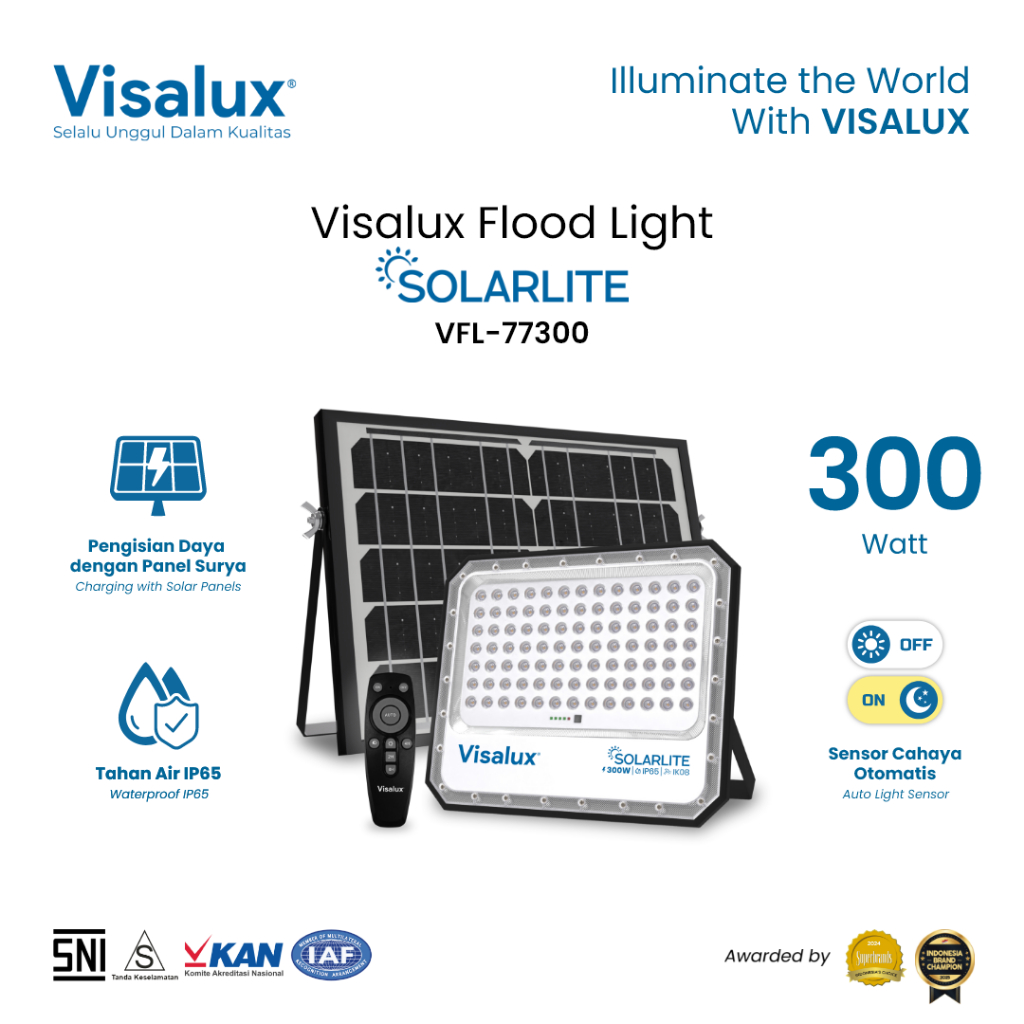 Visalux Flood Light Solarlite 300W - Lampu Sorot Remote Energi Surya Sensor Cahaya Putih (SLT-VFL77300DL)