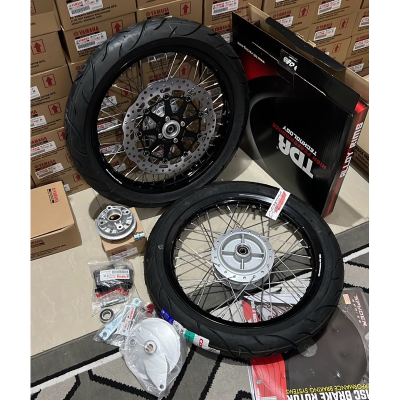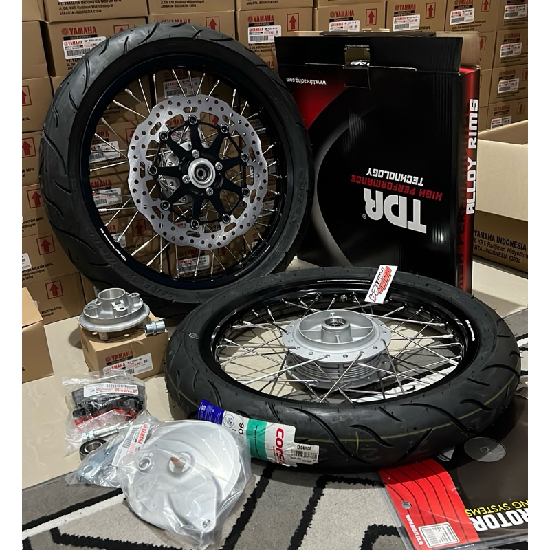 PAKET VELG TDR 160/185 ring 17 SET TROMOL JUPITER DEPAN BELAKANG RXKING ORIGINAL BAN CORSA TERMINATOR TINGGAL PASANG