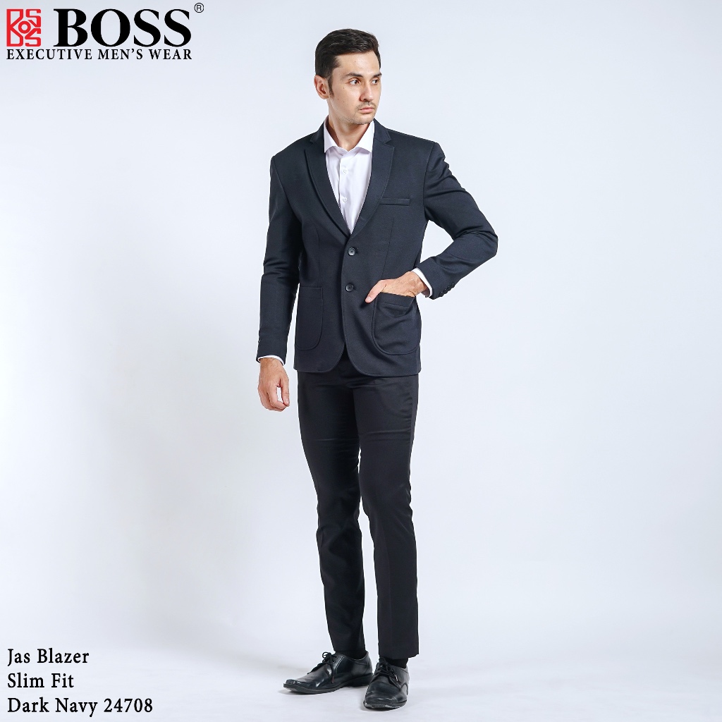 BOSS Jas Blazer Casual Slim Fit Biru Tua Dark Navy 24708
