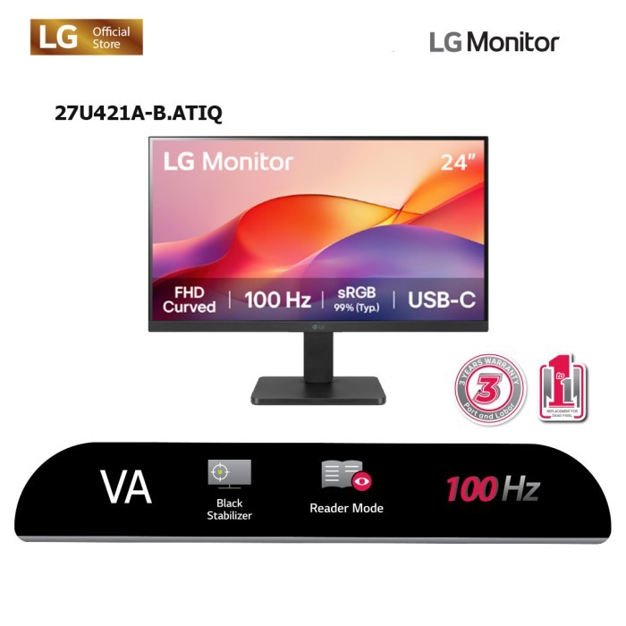LG 24U421A-B 24'' Curved FHD Monitor with USB-C 100Hz