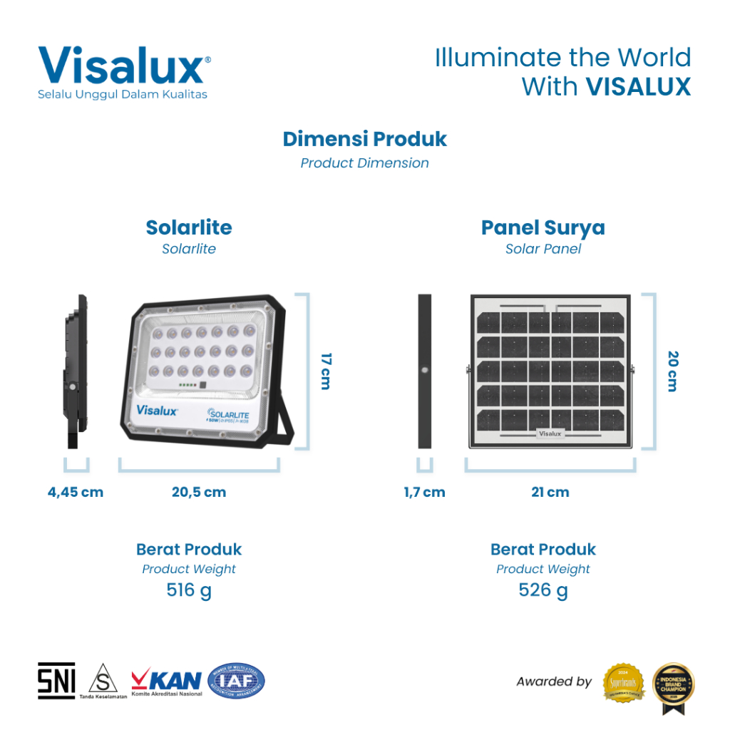Visalux Flood Light Solarlite 50W - Lampu Sorot Remote Energi Surya Sensor Cahaya Putih (SLT-VFL7750DL)