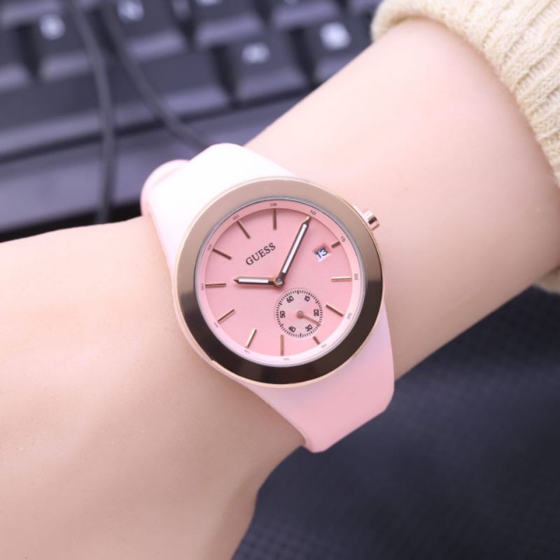 GUESS G012 JAM TANGAN WANITA TALI KARET RUBBER TANGGAL AKTIF DIAMETER 3,4CM INCLUDE BOX BISA