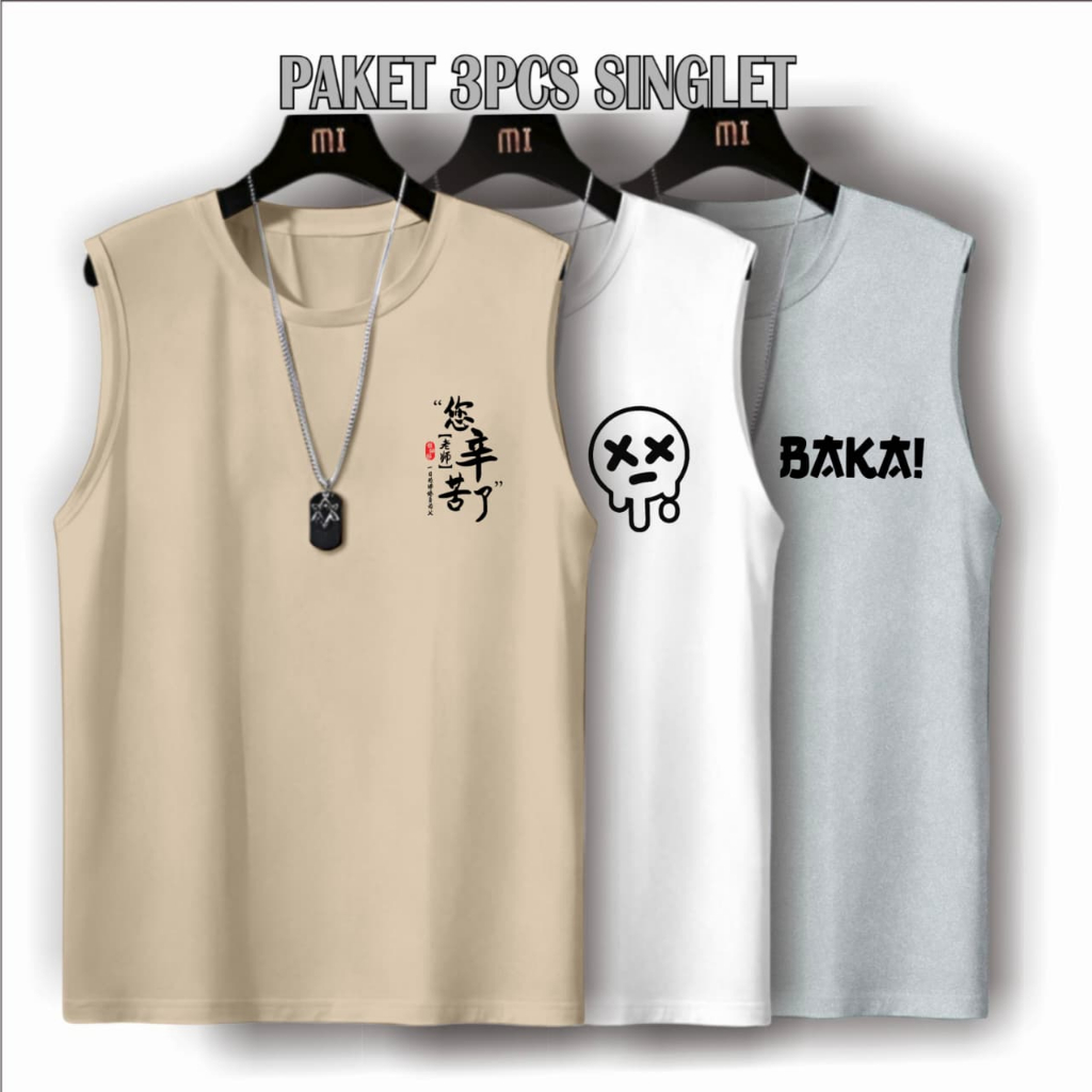 Singlet Lekbong Unisex Paketan 3 pcs CUMA 50ribu Singlet Santai Gym / Paketan Singlet Motif Simple