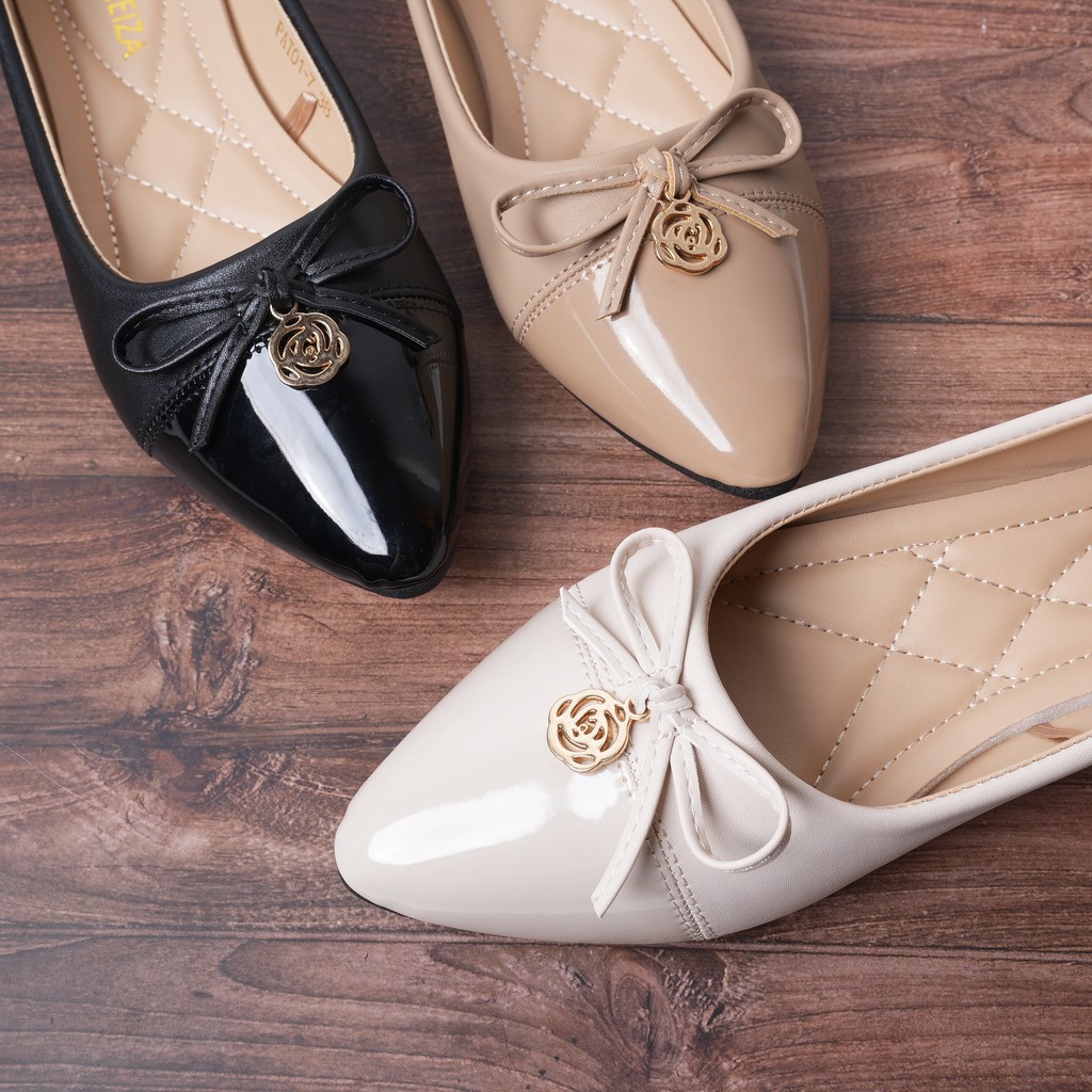 Peter Keiza Sepatu Flat Shoes Wanita Elegan Hiasan Pita dan Flower Charm PAT01-7
