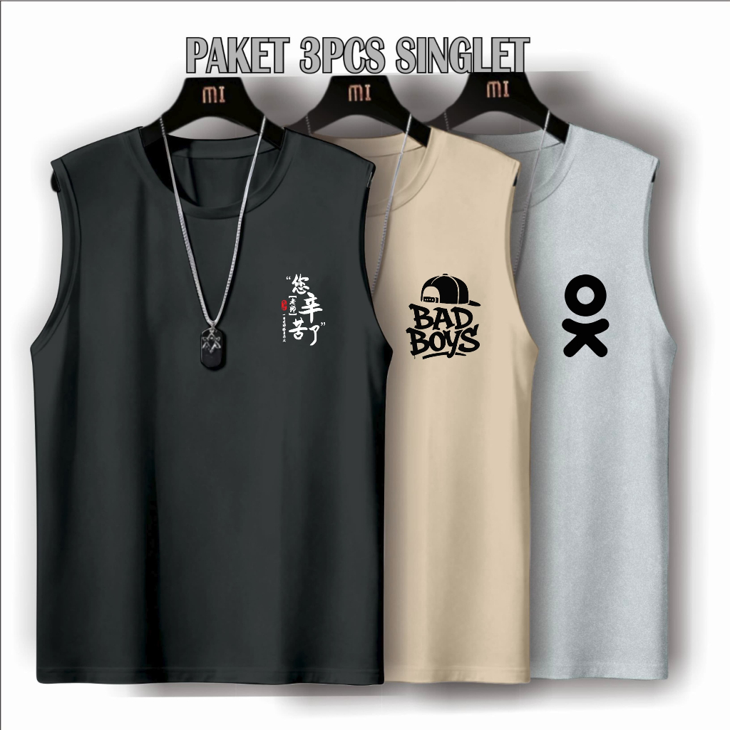 PAKET HEMAT Kaos Singlet Distro Paketan 3 pcs 50ribu Singlet Santai Gym / Paketan Singlet Premium