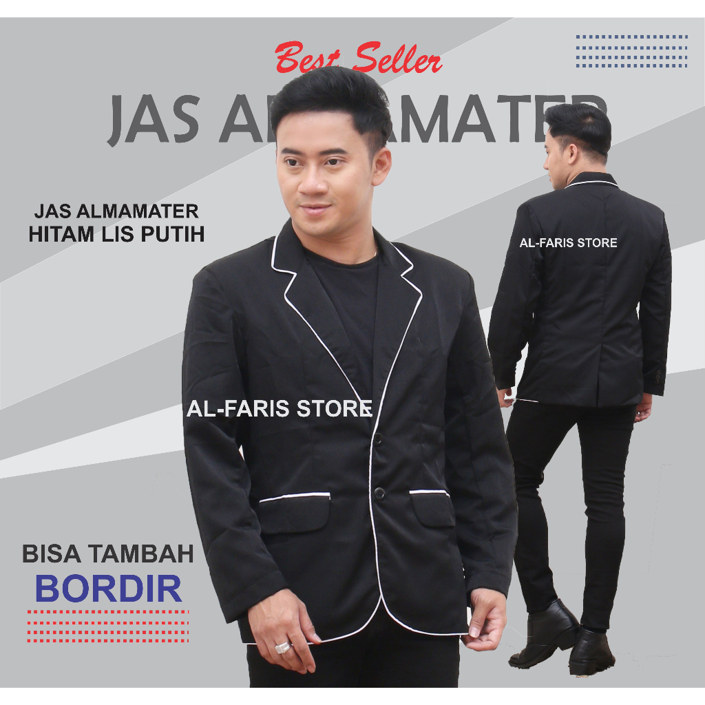 [BISA ] JAS Almamater hitam Lis Putih Full / jas pondok pesantren full furing bisa di bordir