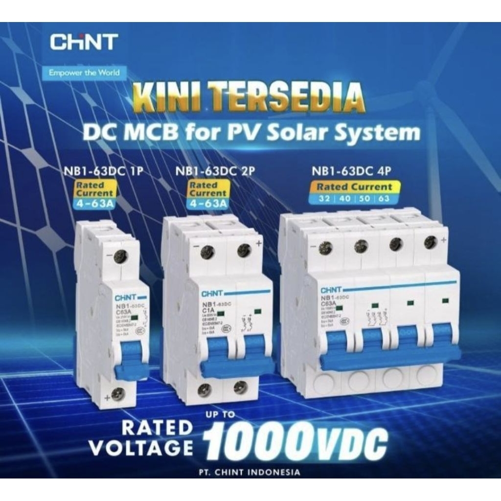 MCB CHINT DC NB1-63DC 1P 6kA 1A, 2A, 4A, 6A, 10A, 13A, 16A, 20A, 25A, 32A, 40A, 50A, 63A Mini Circuit Breaker CHINT 2 Po