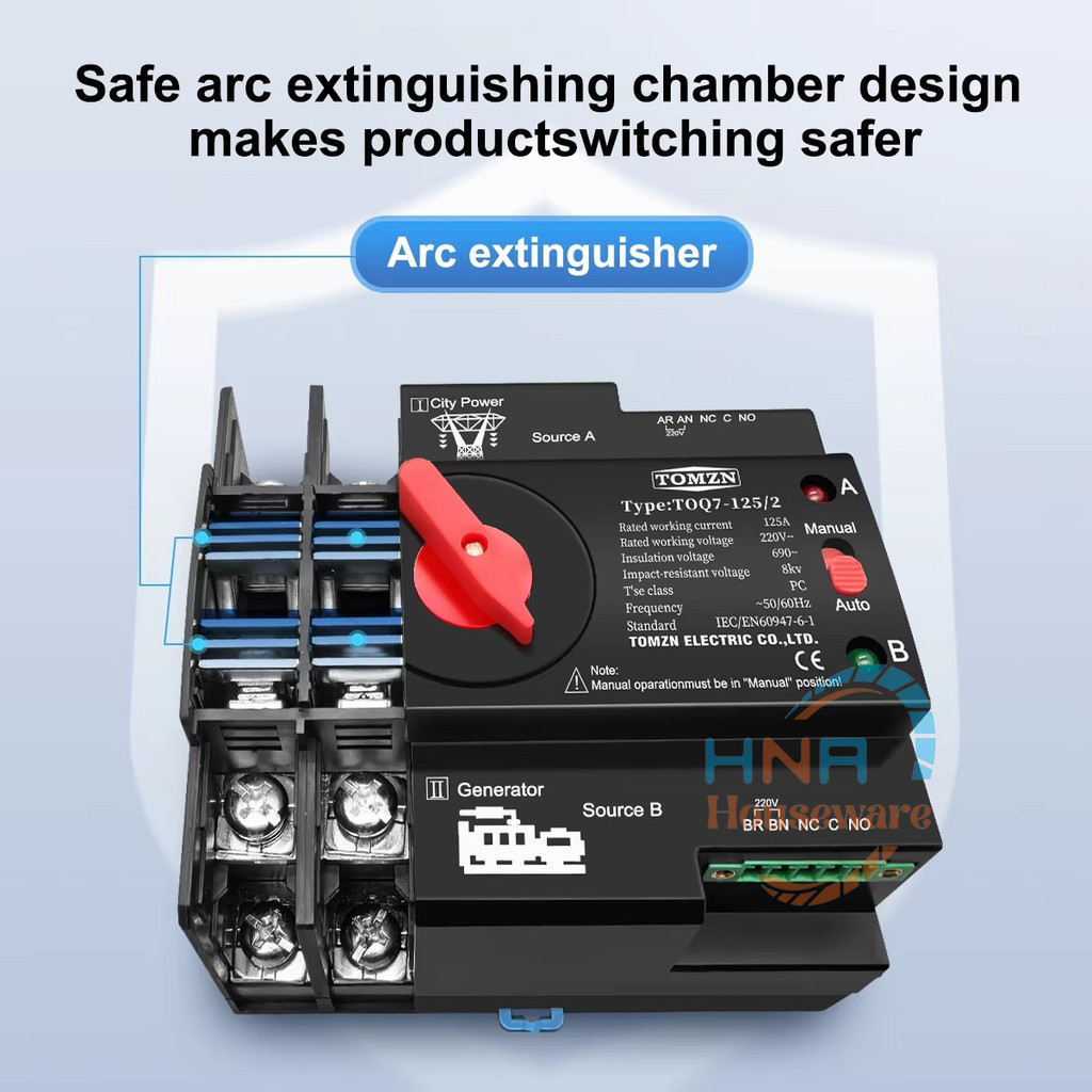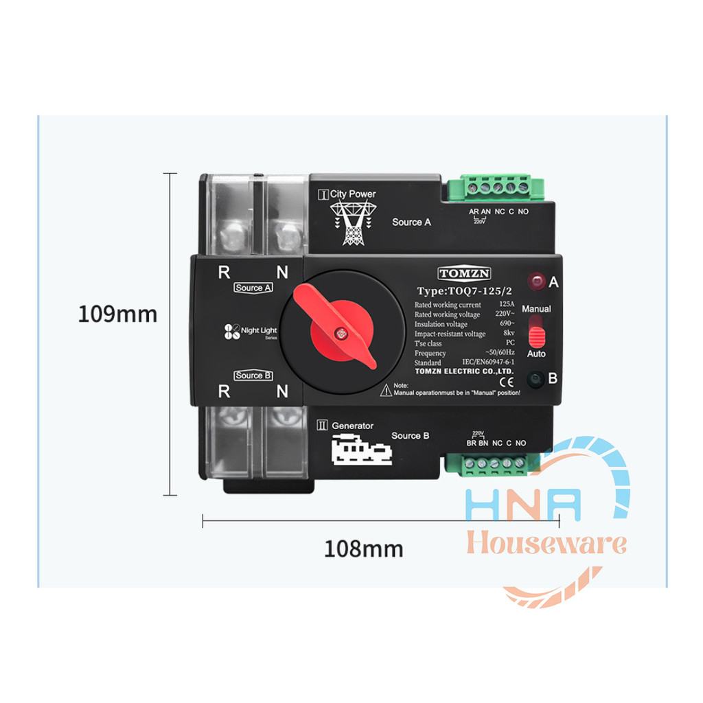 ATS Automatc Transfer Switch 2P TOMZN 125A 230A Tipe MCB Dual Power