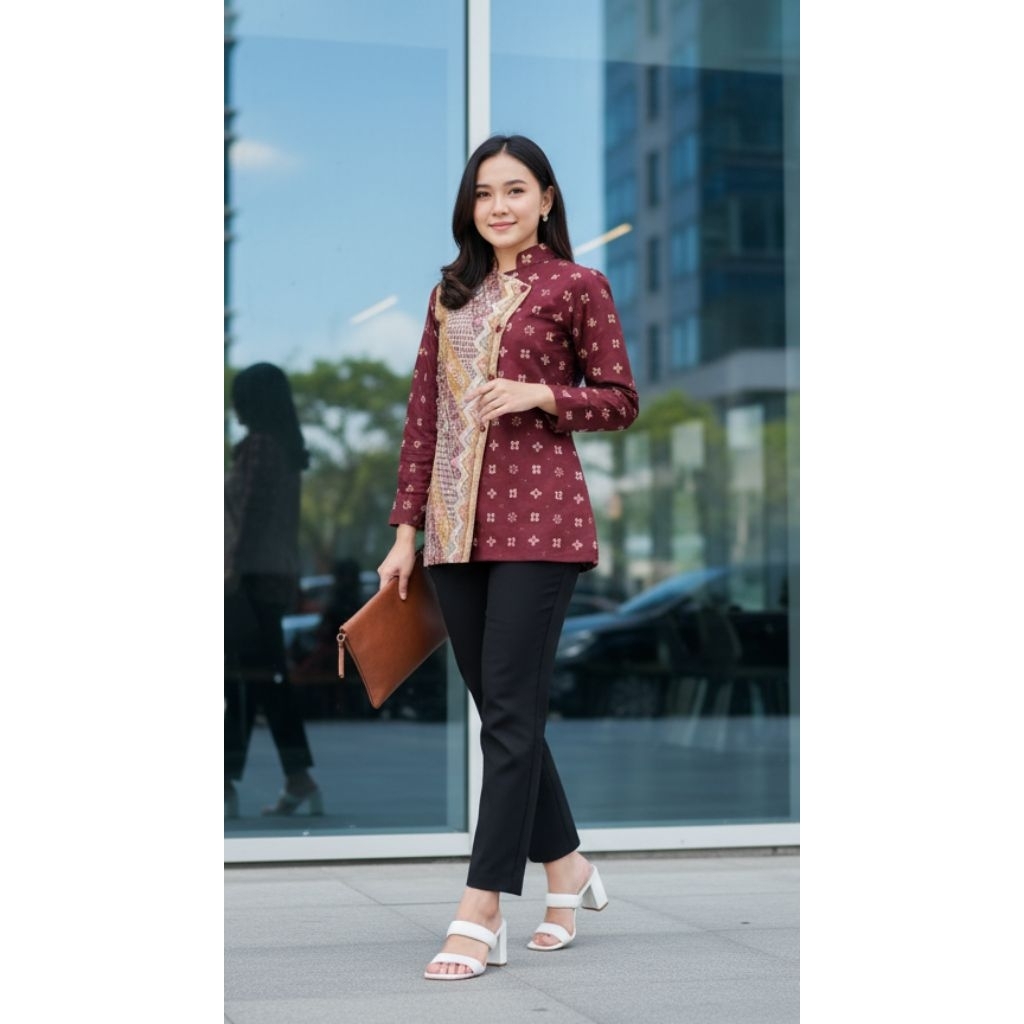 Batik Solo Trendy -Blouse Yolla Batik Model Janggan Dengan Bahan Katun Premium Dan Sudah Lapis Furing
