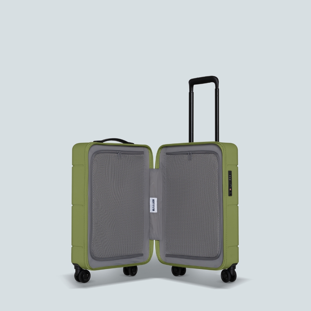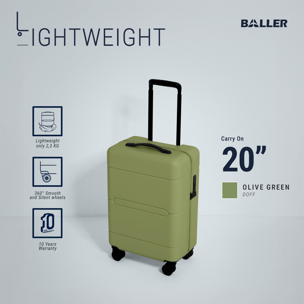 BALLER Koper Lightweight Zipper Polycarbonate Carry On 20 inch Matte Olive Green - Koper Kabin Kecil Travelling TSA Lock Super Ringan