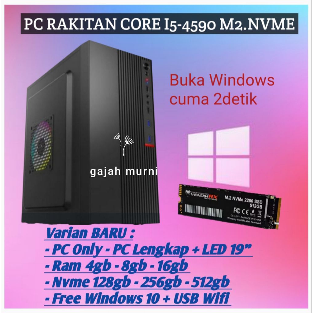 PC Rakitan Baru i5 4590 Fullset Monitor 19" / Ram 4,8,16gb - Nvme 128,256,512gb Bonus keyboard mouse