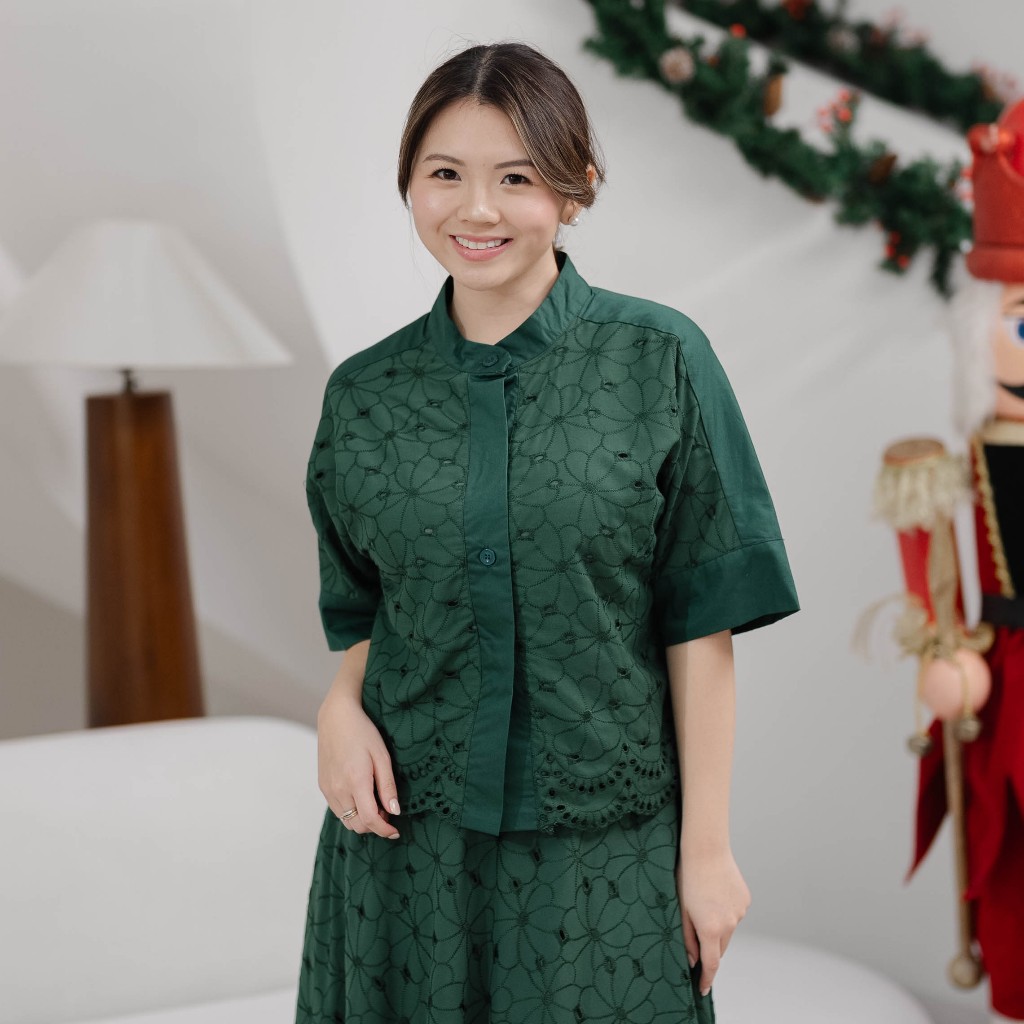 Beatrice Clothing Oriana Blouse - Atasan Natal Katun Bolong Elbow Sleeve