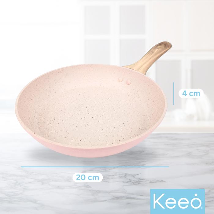 Keeo 20 cm Paket Wajan Teflon Penggorengan Frypan dan Tutup Kaca Anti Lengket Marble Granit Pink - 1