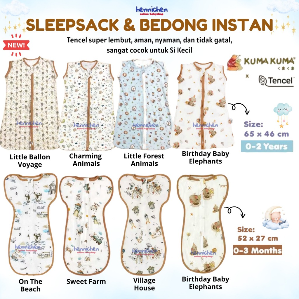 Kuma kuma Tencel Swaddle Instant Bedong / Tencel Sleep Sack Kantong tidur