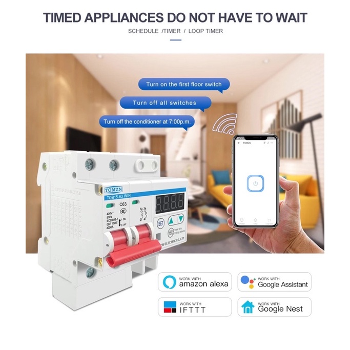 MCB AC 63A Smart Wifi LCD Circuit Breaker Protector Current