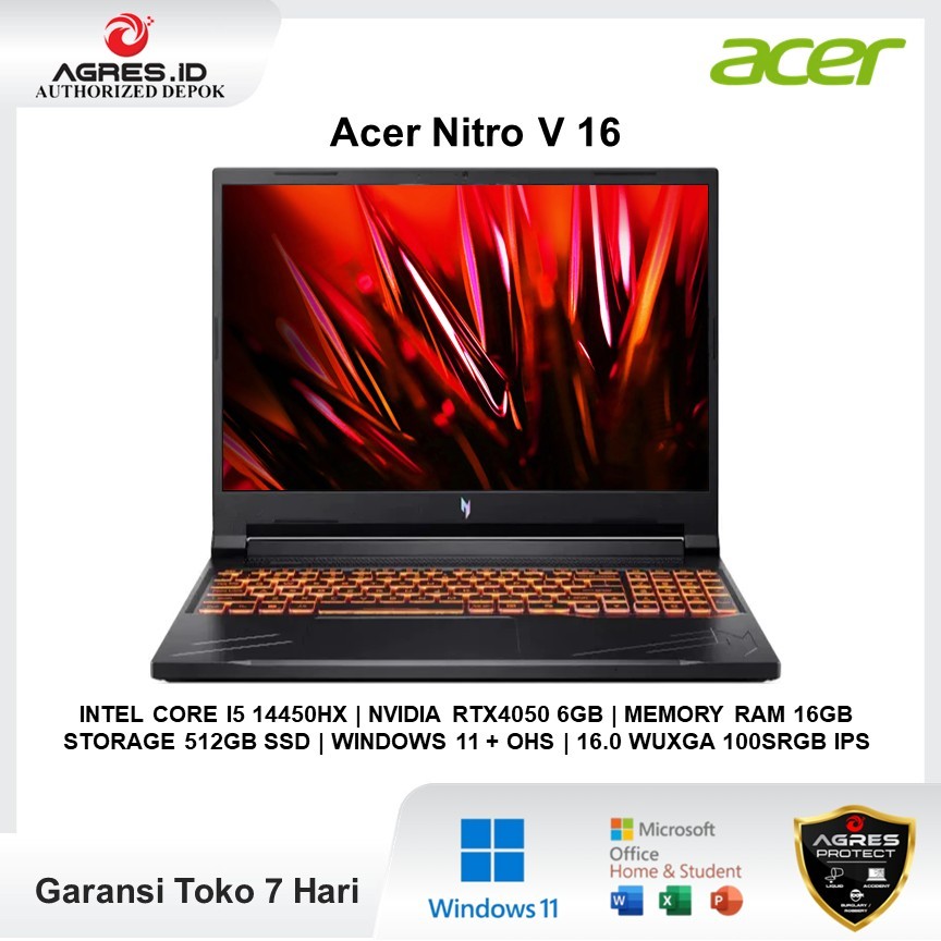 Laptop Gaming Acer Nitro V 16 I5 14450HX RTX4050 6GB/ 16GB 512GB Win 11 +OHS 16.0 WUXGA IPS 165HZ