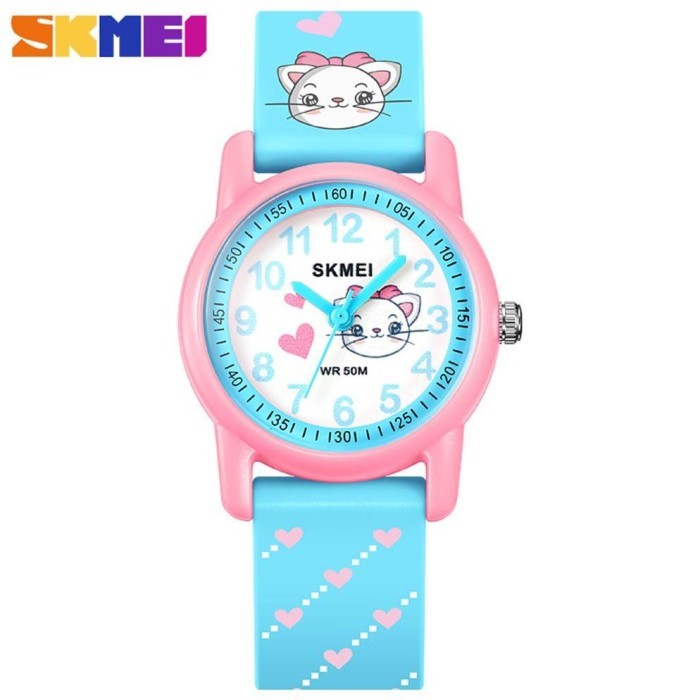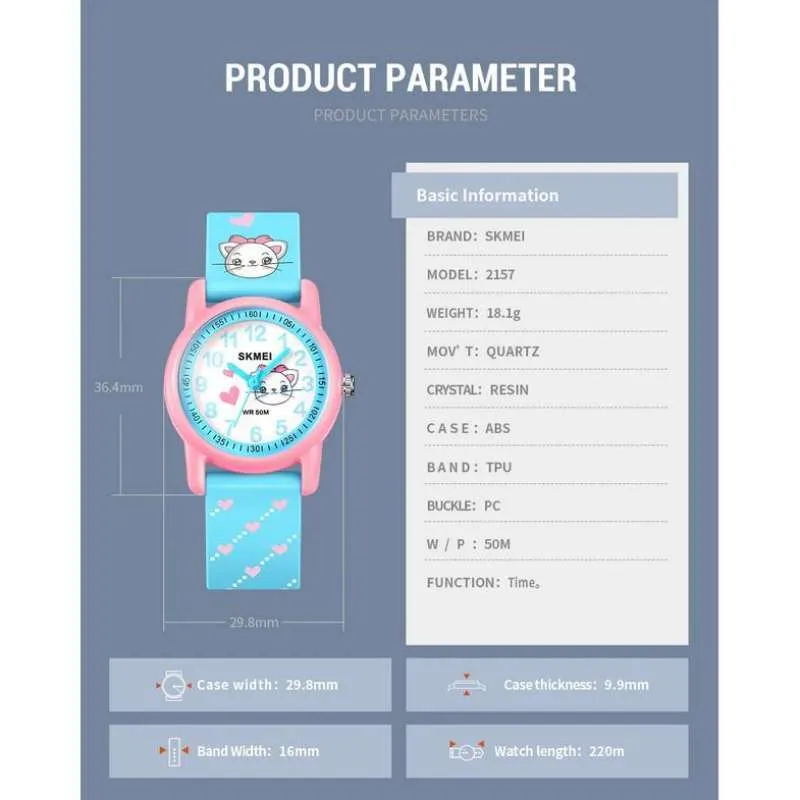 Jam Tangan Analog Anak SKMEI 2157 BLUE PINK CAT WATER RESIS 30M
