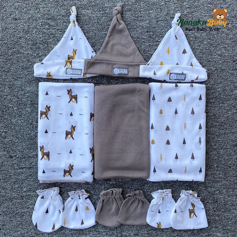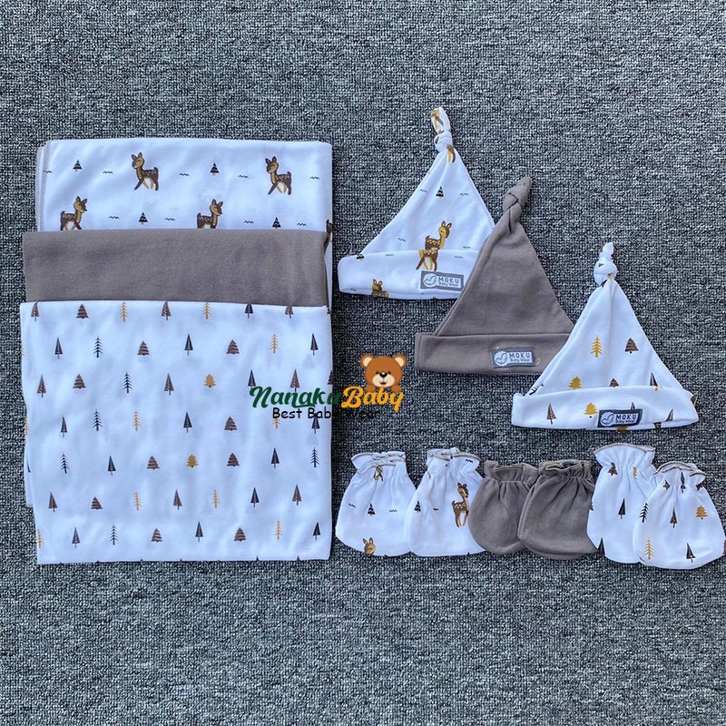 Nanaku Baby - Paket Bayi 4in1 Series Cokpol | Paket Newborn Lengkap Isi Bedong Jumbo | Sarung Tangan Kaki | Kupluk Rekom