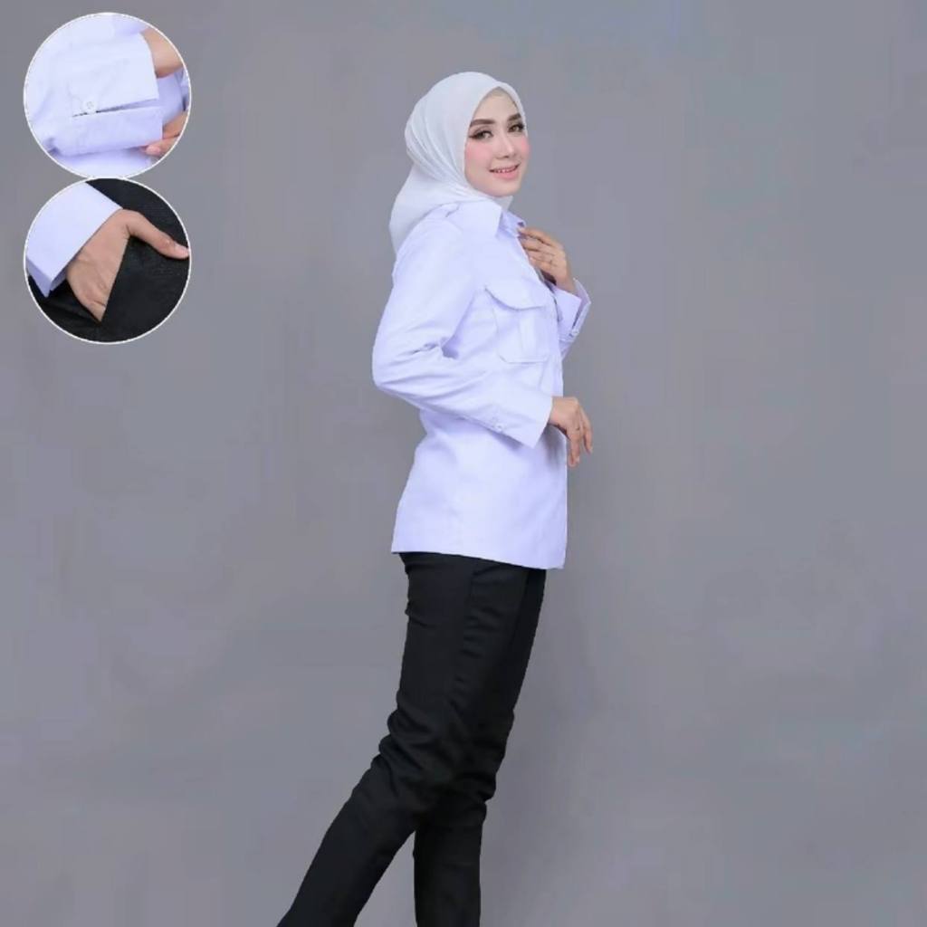 SETELAN SERAGAM KERJA DINAS PUTIH KANTONG DUA KERAH KEMEJA DAN KERAH REBAH / SERAGAM KERJA ATASAN PUTIH WANITA