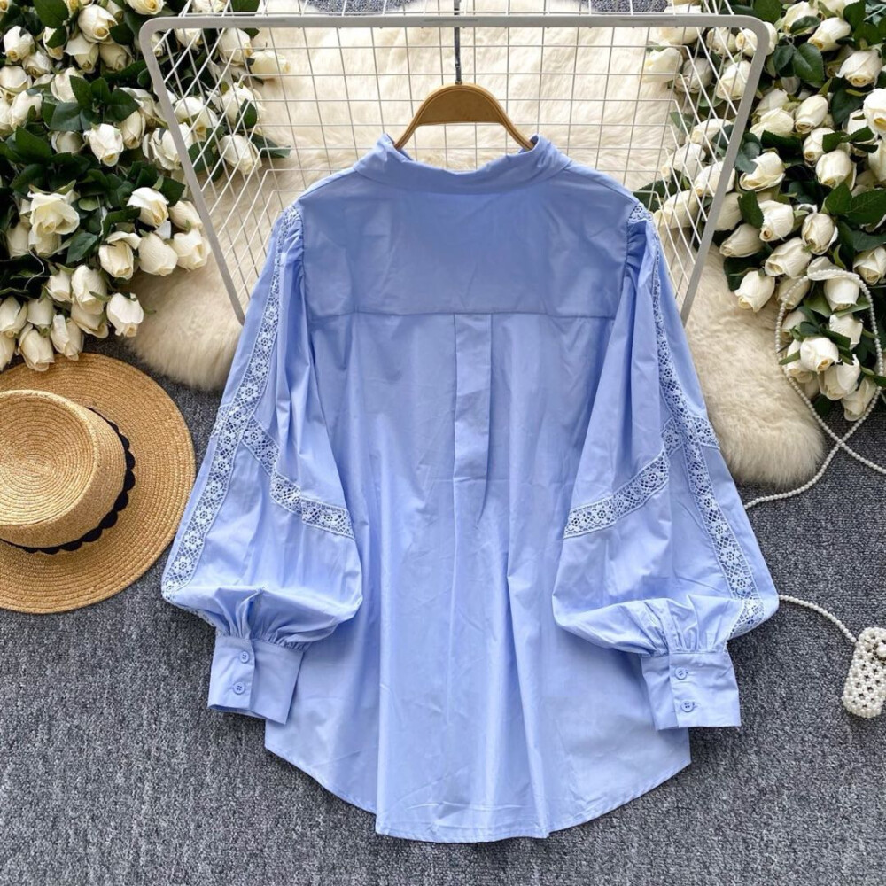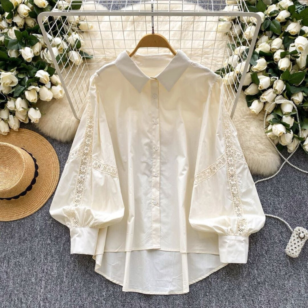 Kemeja wanita lengan panjang model longgar warna solid gaya casual