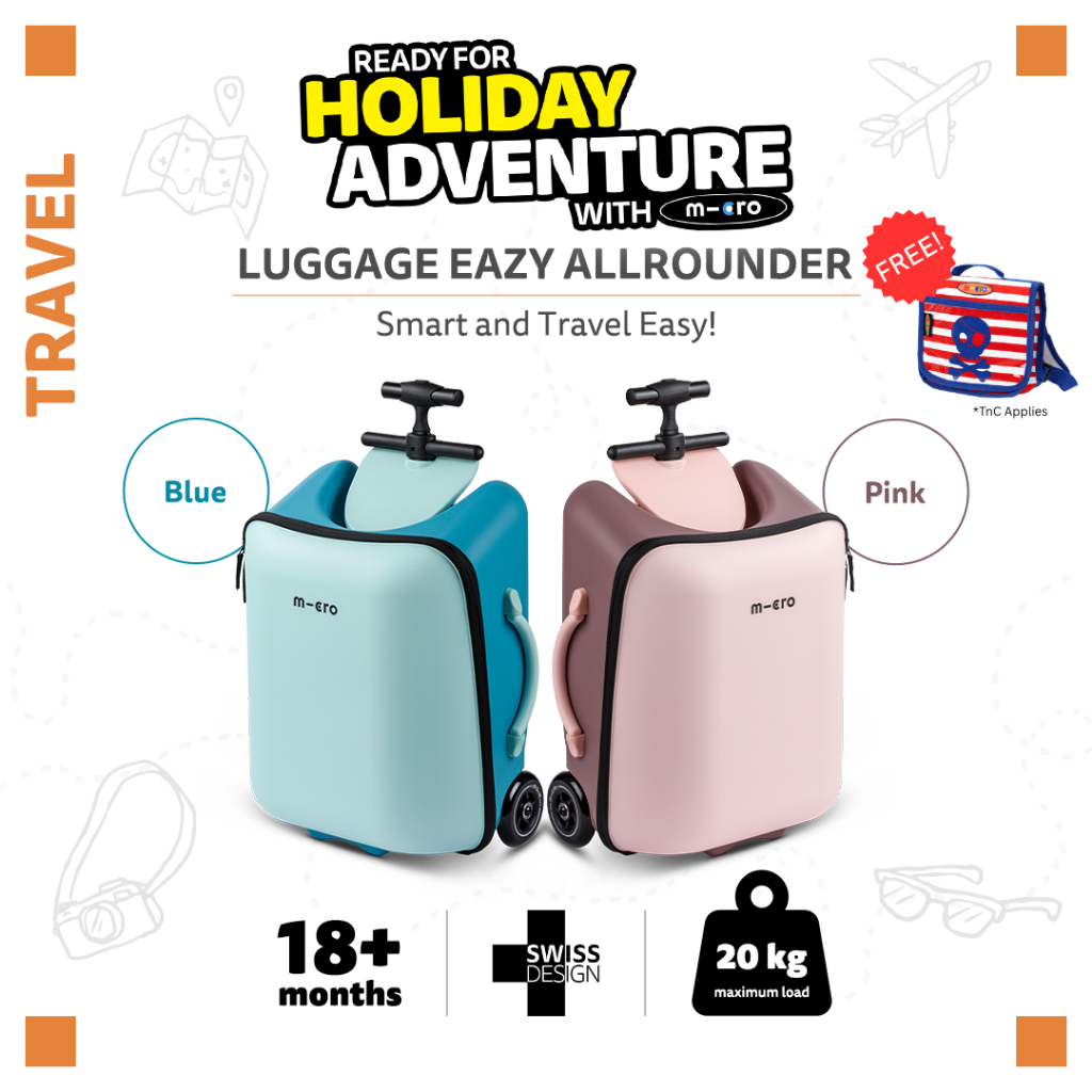 [HADIAH GRATIS] Micro Luggage Eazy All Rounder Pink and Blue - Koper Cabin Multifungsi Travelling & Belanja dengan Anak Warna Pink dan Biru