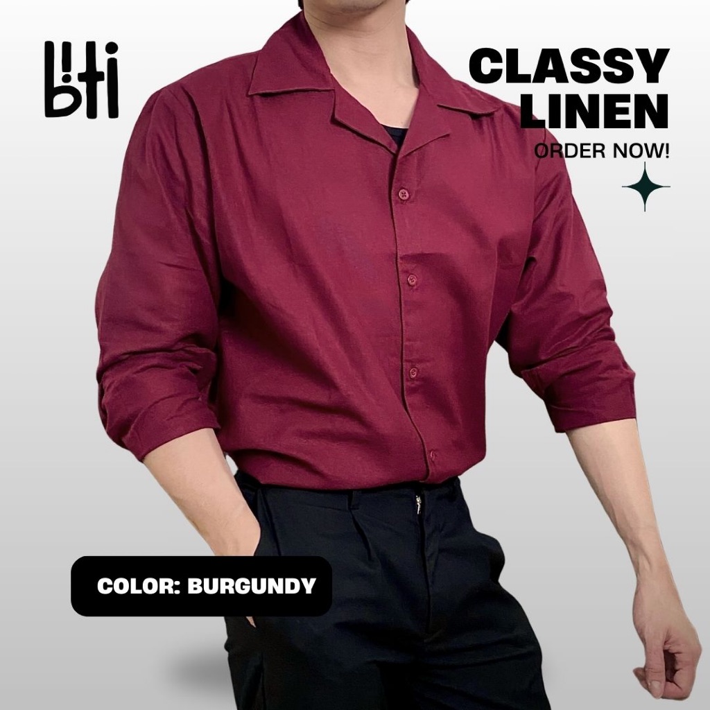 BITI Linen Classy Shirt | Kemeja Pria Wanita Bahan Adem Santai | Formal Kantor Sehari hari Outfit Korean style Polos