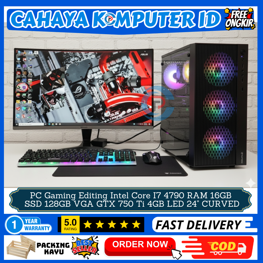 Komputer Fulset Intel Core I7 4790 Ram 16GB SSD 256GB VGA 4GB Monitor Curved 27" Gaming Editing OK