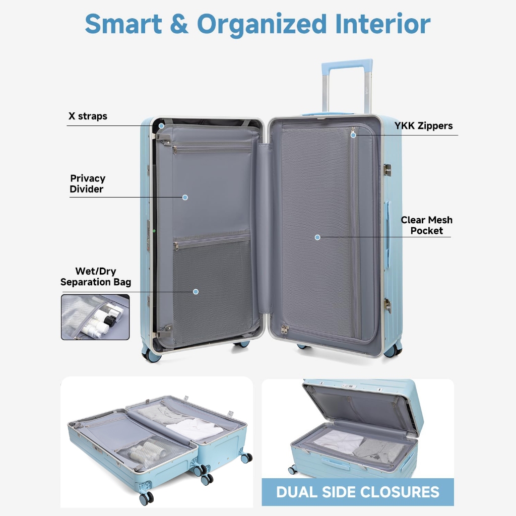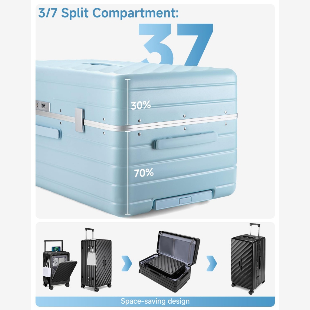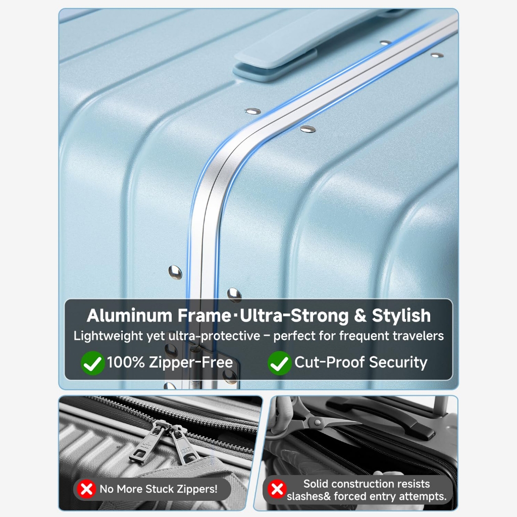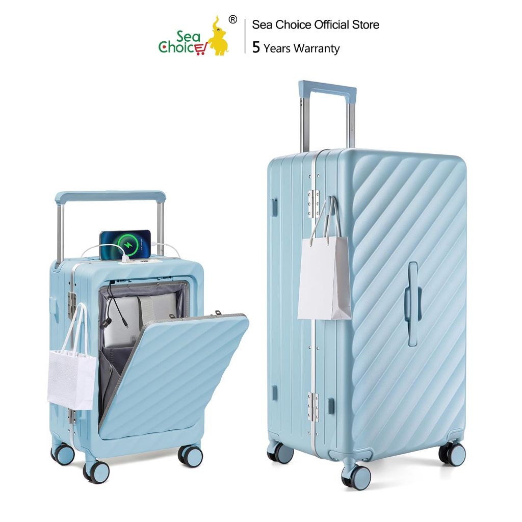 SEA CHOICE Set Koper 20” Cabin|30” Besar–PC Hard Shell,Rangka Aluminium,Kunci TSA, USB & Saku Laptop