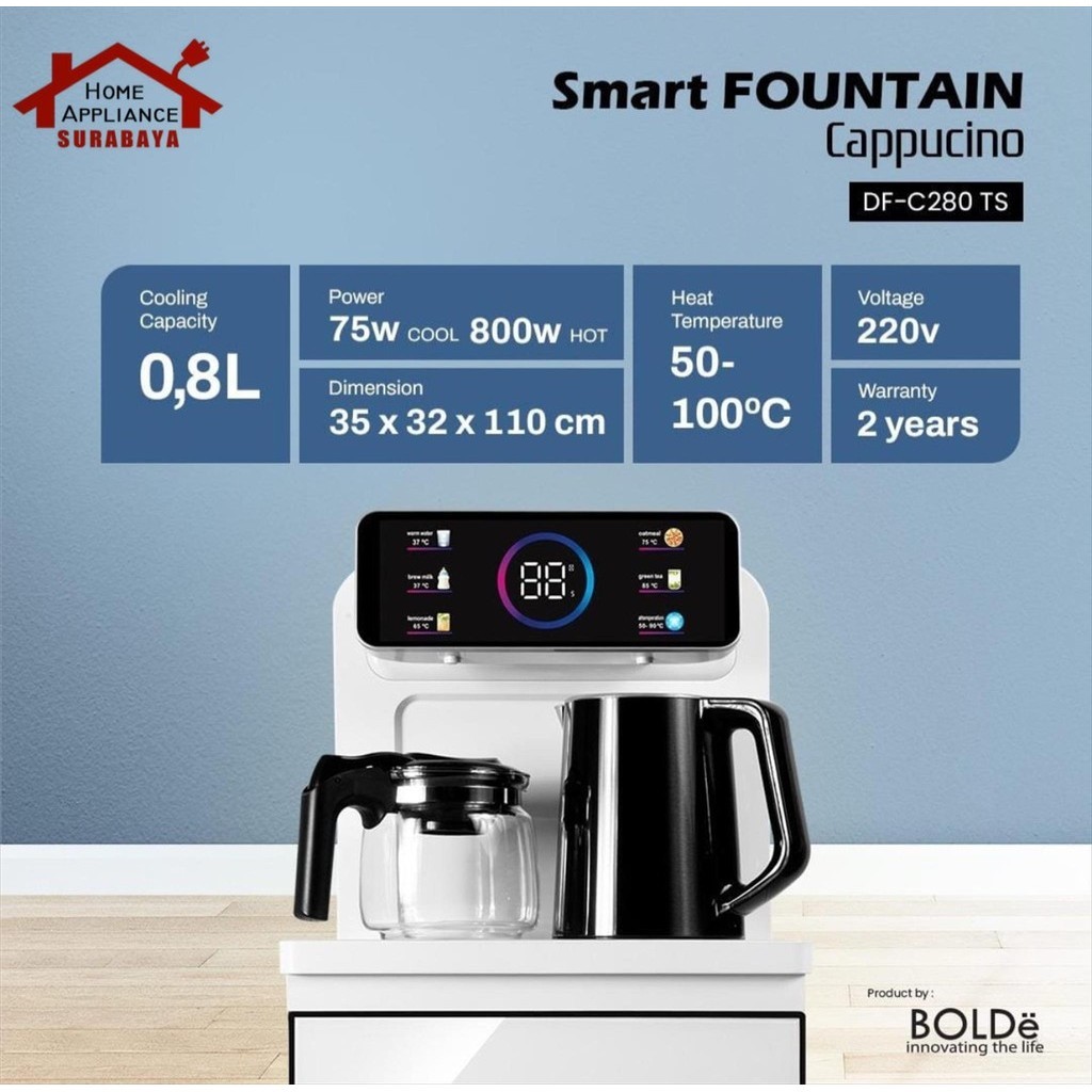 BOLDe Water Dispenser Air Galon Bawah Smart Fountain CAPPUCINO - Air Panas Dingin Normal - Touch Screen LED Display + Remote