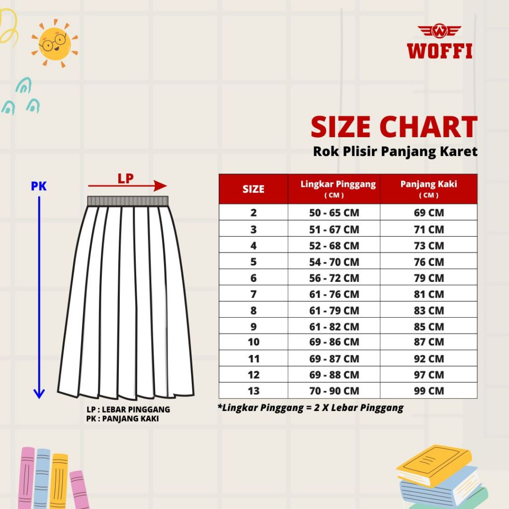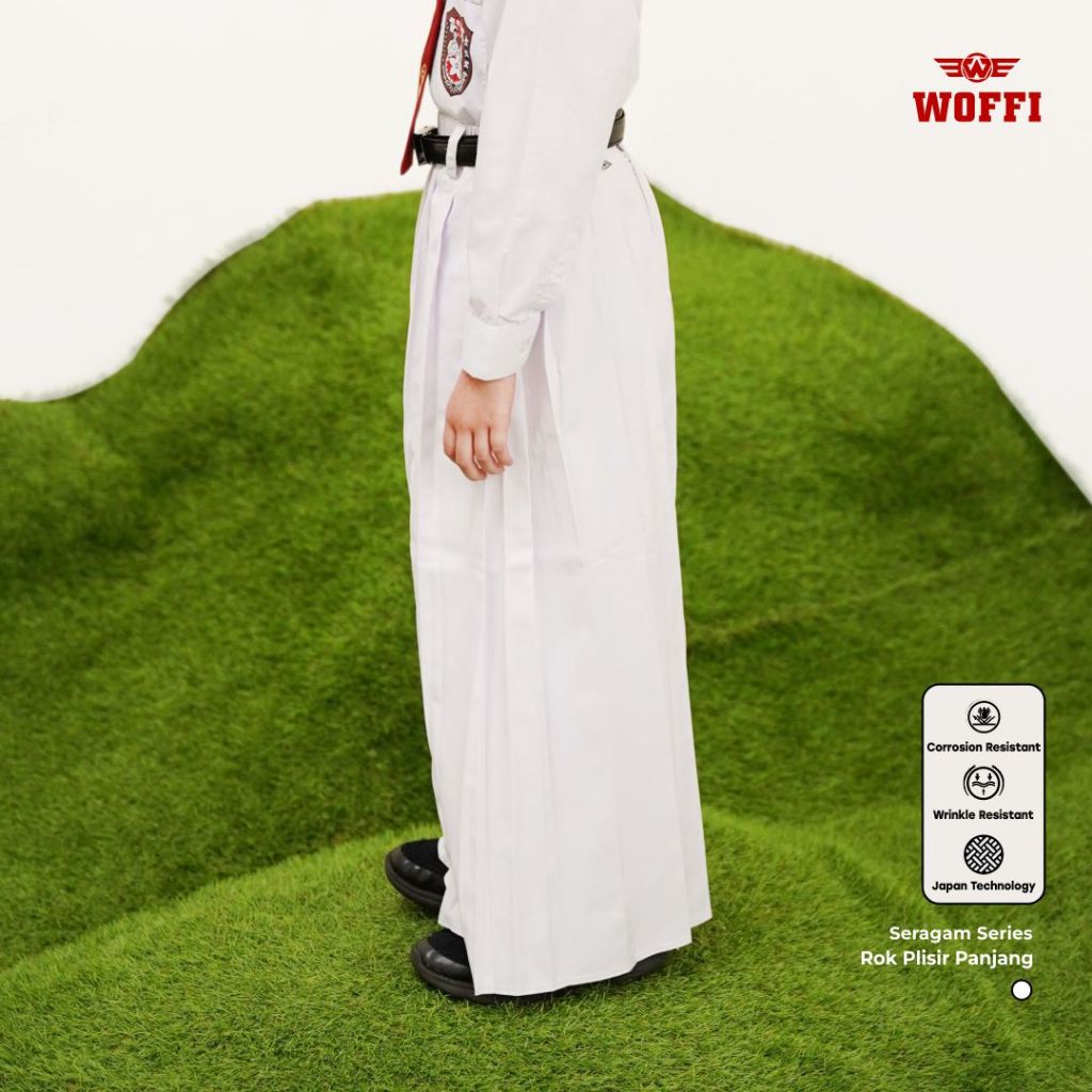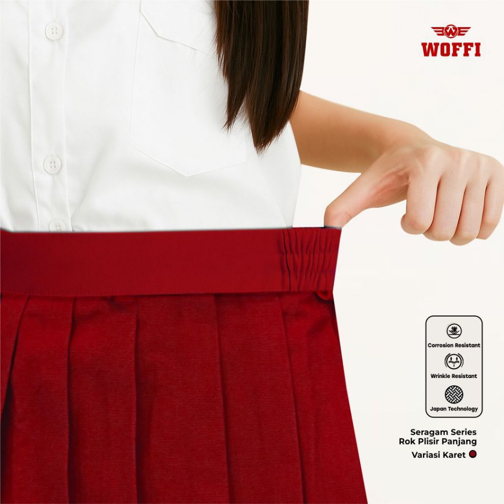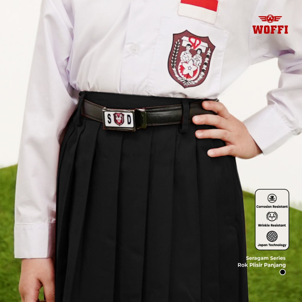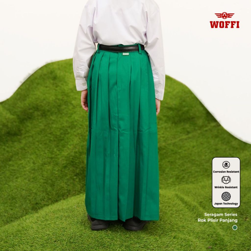 Seragam SD Woffi Rok Plisir Panjang Merah Putih Hijau Hitam