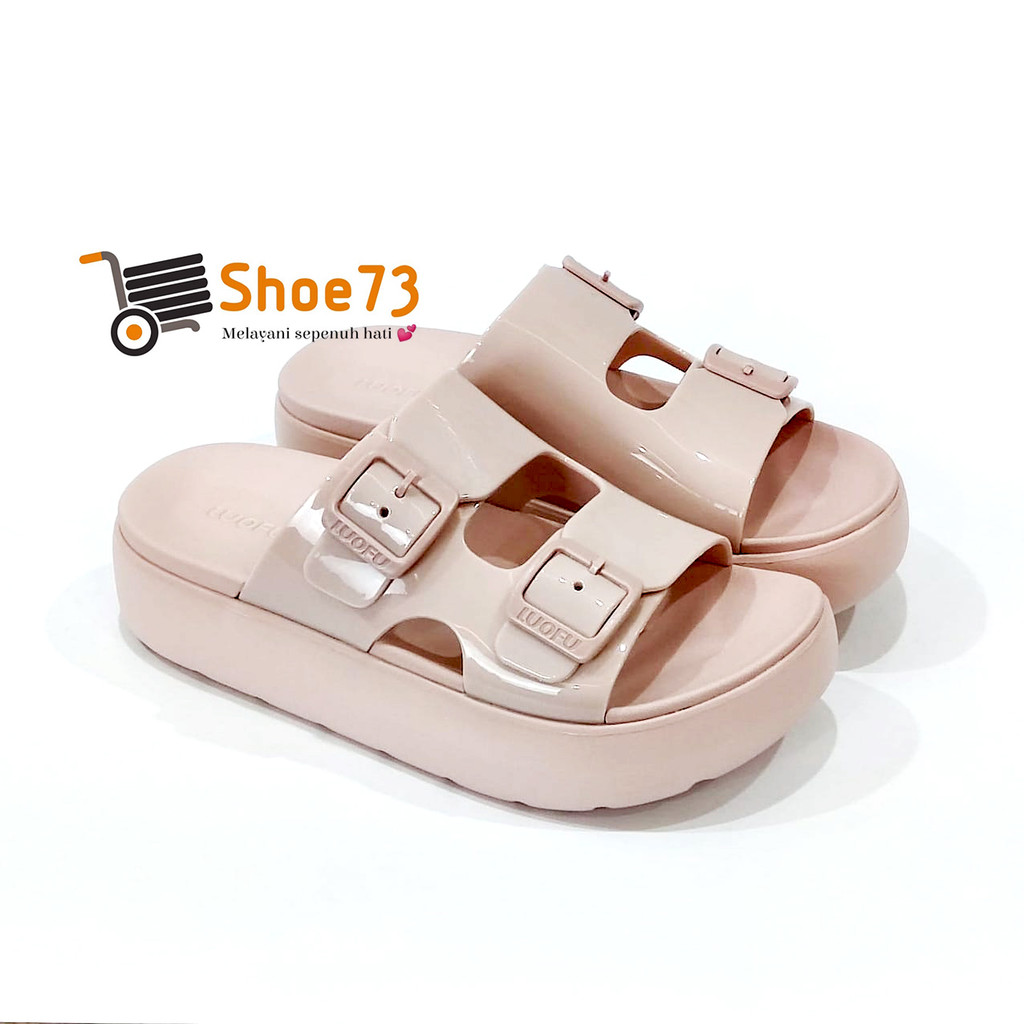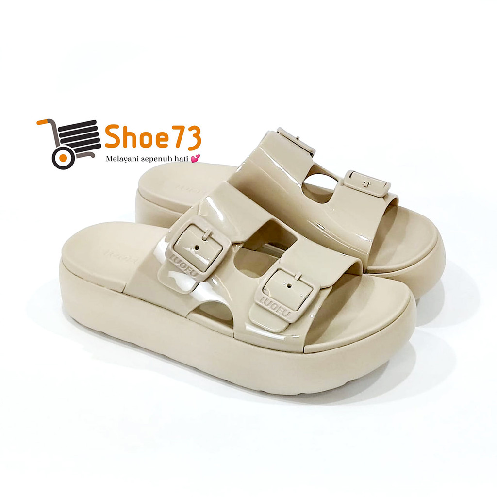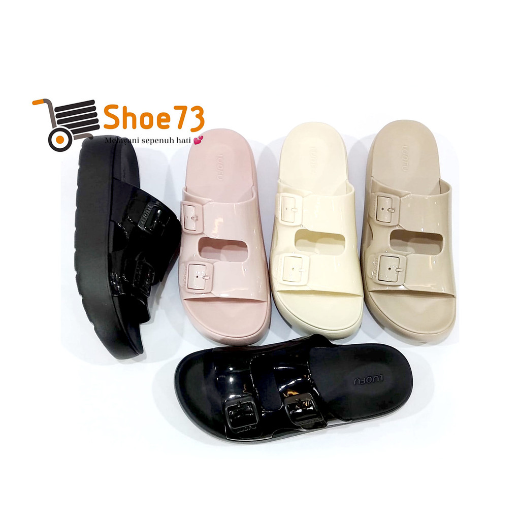 LUOFU E 7221 - E01 SIZE 36-40 ORIGINAL l Sandal Wedges Karet Selop ban 2 jelly wanita l Sendal kokop cewek Rringan