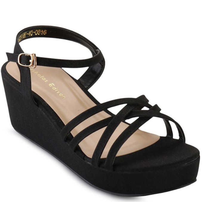 nicholas edison wedges felda black sandal wanita strappy slingback
