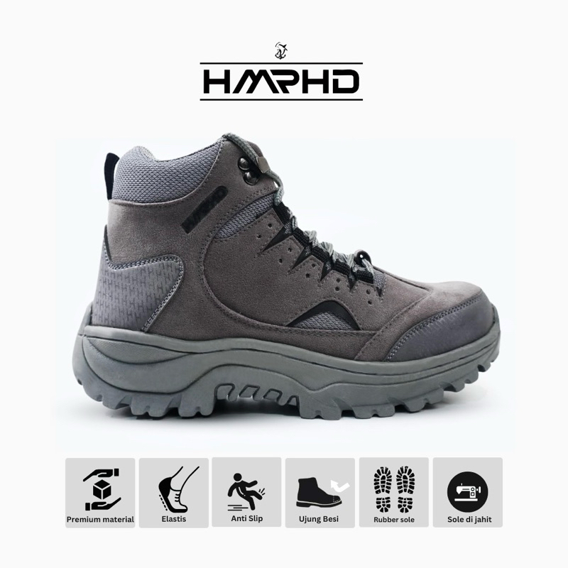 HMRHD Sepatu Pria Safety Boots Mako High Grey Black Ujung Besi
