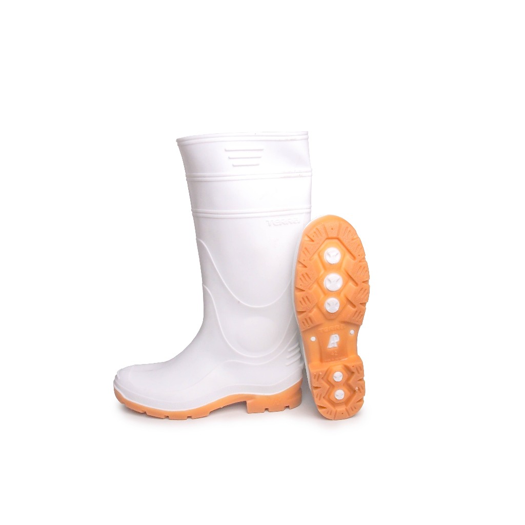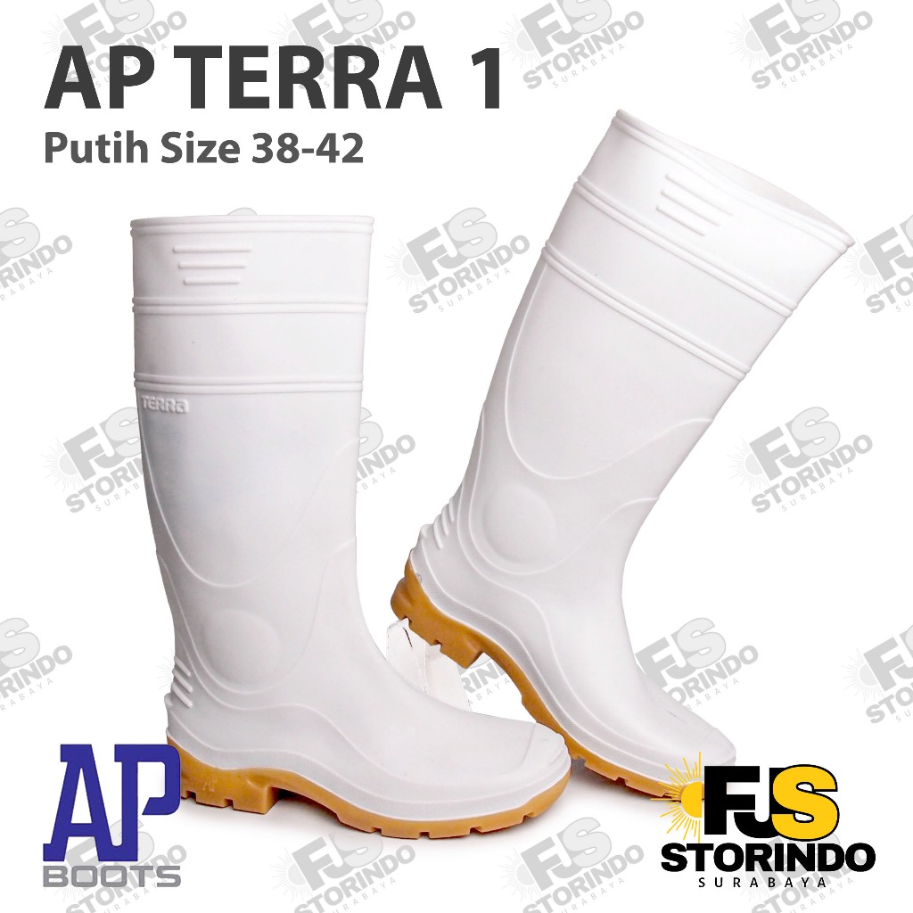 Sepatu Boot Tinggi AP TERRA 1-AP BOOTS-Putih-Karet Lokal Anti Air&Slip-Perikanan Perairan Surabaya Jawa Timur Jatim