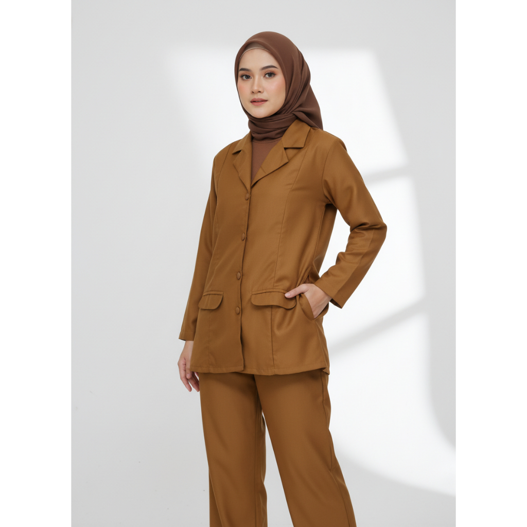 Baju Seragam Khaki Tua Wanita Model Saku Tutup