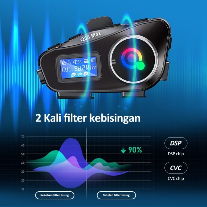 SMARTCOM - Helm Interkom Q58 MAX Headset Earphone Bluetooth Layar LCD Intercom Headset Helmet dua orang dua arah
