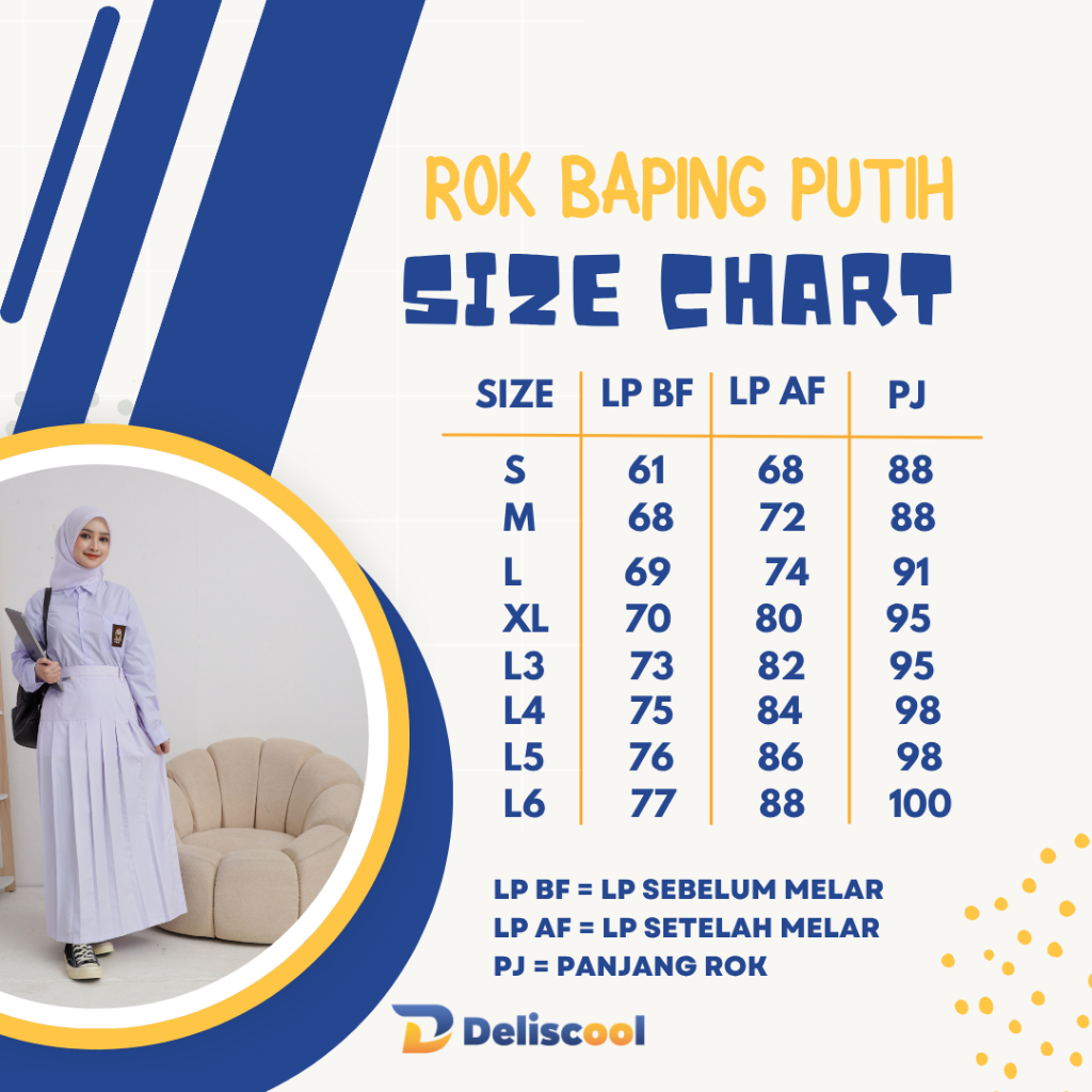 Deliscool Seragam SMP/SMA Rok Panjang Rempel Bawah Pinggang Putih - Seragam Sekolah - Baju Seragam