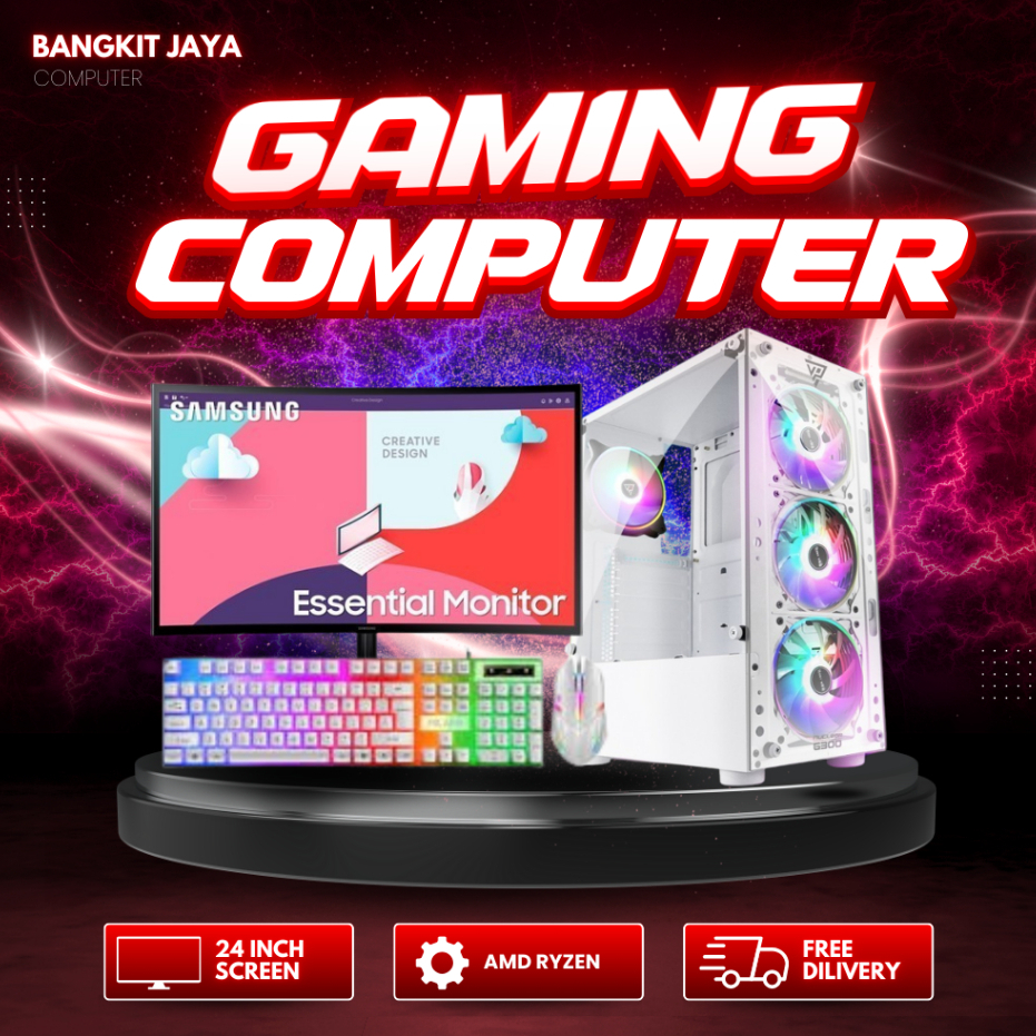 PC Gaming Fullset Ryzen 5 5600G Ram 16GB SSD/HDD Monitor 24 Inch Gaming Editing