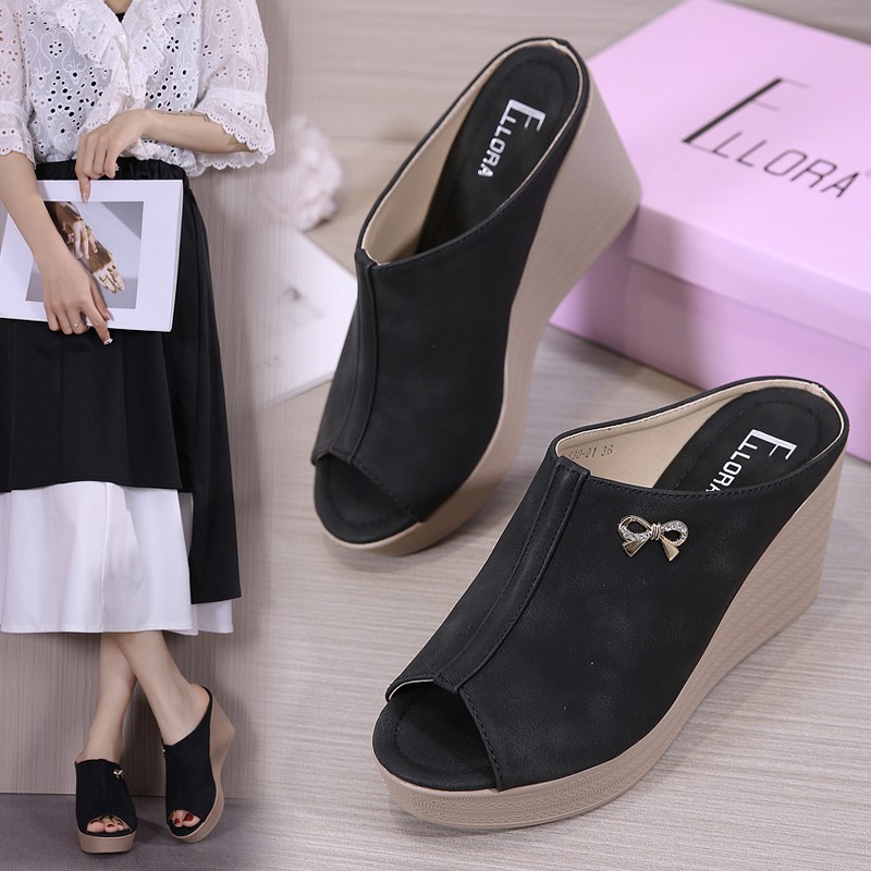 ELLORA EB530-01 Sandal Wedges Wanita Import 8.5cm