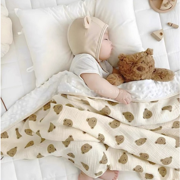 Selimut Dot Bayi Bamboo Bubble 100x110cm / Selimut Bayi Korea Minky Stitches Cotton Dot Muslin Jepang Bamboo / Newborn I