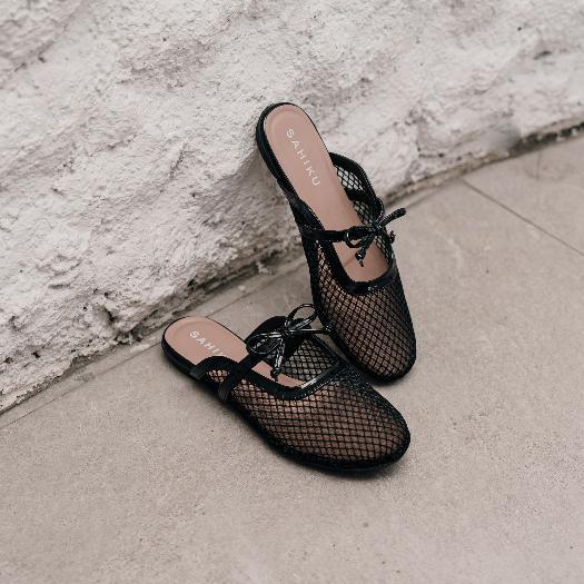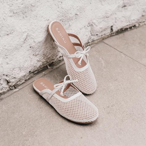 SAHIKU - Kiara Mesh Flat Mules Selop Balet Fishnet Sandal Coquette Jaring Net Korean Style Wanita