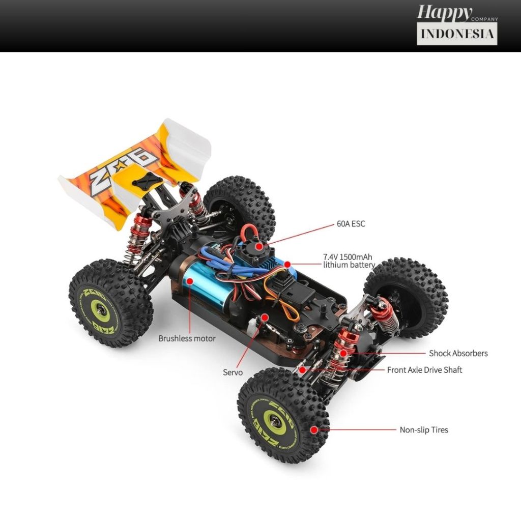 RC Car WL 144010 RC Buggy Brushless Drift 1/14 Metal Chassis 75Km/H Mobil RC Balap
