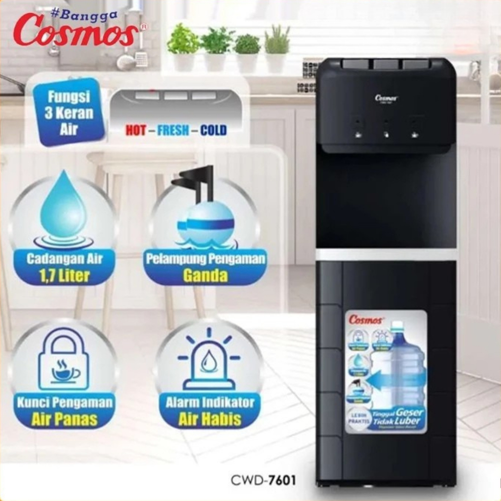 DISPENSER GALON BAWAH COSMOS CWD-7601 3 Kran Hot Fresh Cold