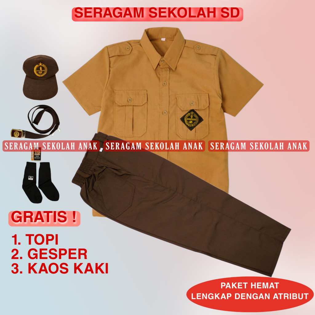Setelan Super Lengkap Pramuka Laki Lengan Pendek Seragam Pramuka Sekolah SD Baju Pendek Celana Panjang Kelas 1-6 SD