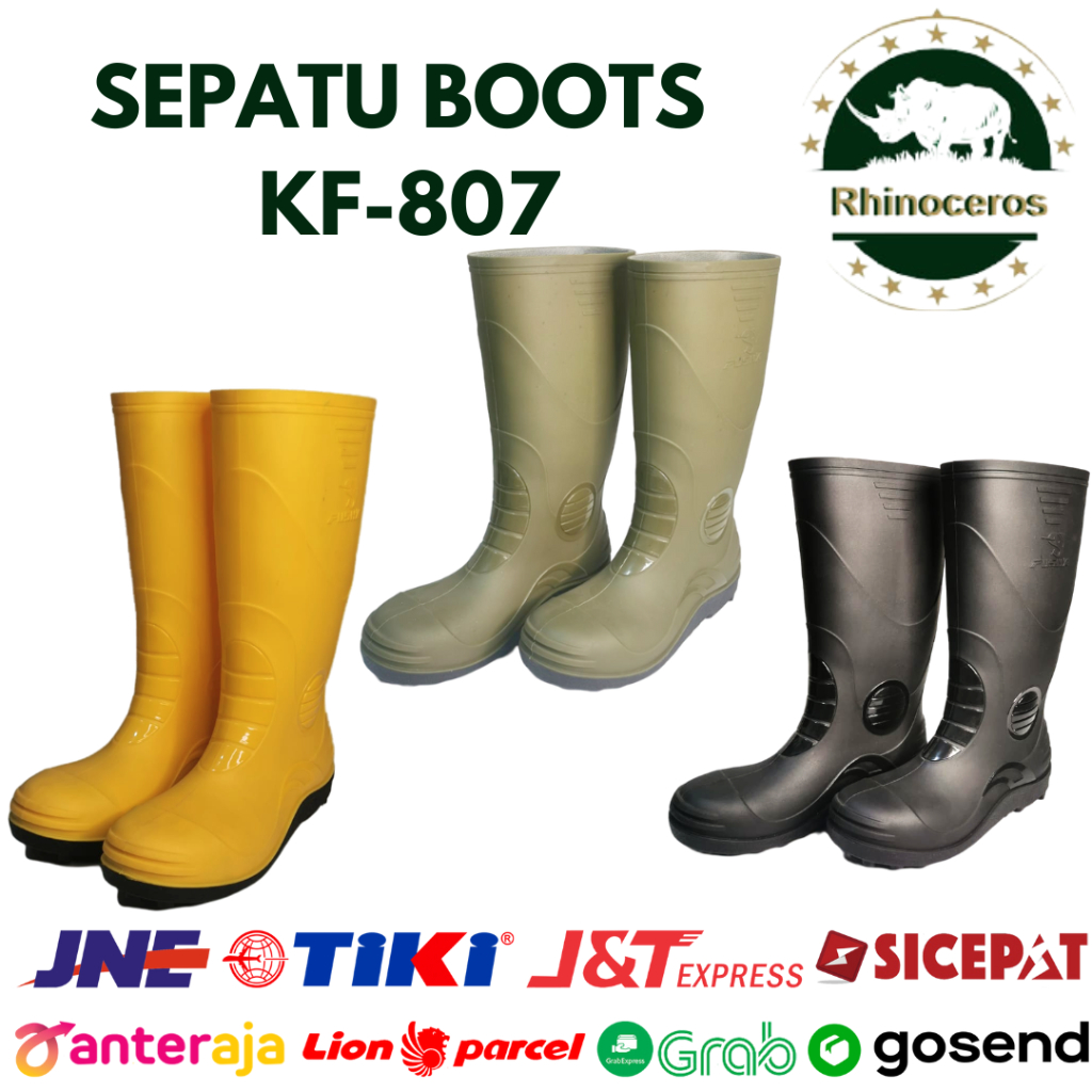 Safety Boot Sepatu Boots Pria Industri Kepala Alas Besi Sepatu Berwarna Bahan Pvc Sepatu Boots Elastis Anti Air Sepatu KF-807