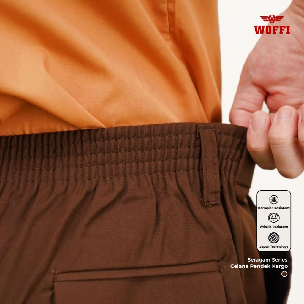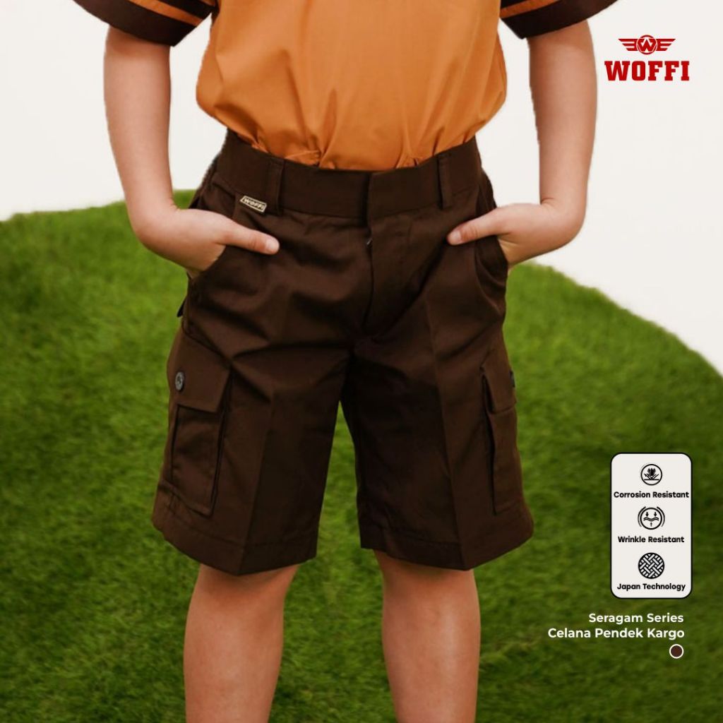 Seragam Pramuka Woffi Celana Pendek SD SMP Kargo Karet Coklat