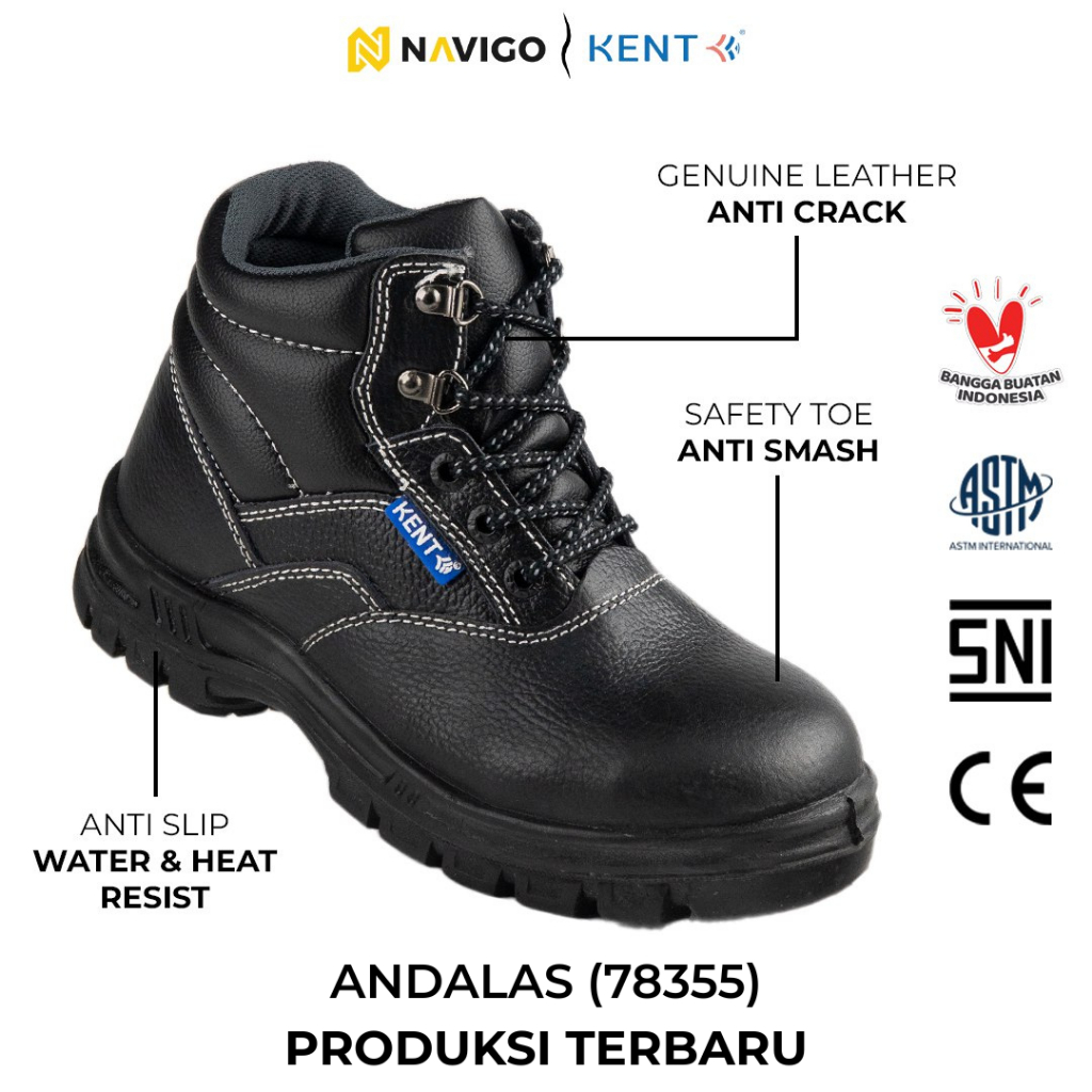 NAVIGO X KENT Sepatu Safety Pria Wanita ANDALAS 78355 - Standar SNI ASTM CE Kulit Asli Ujung Besi Slip Resist