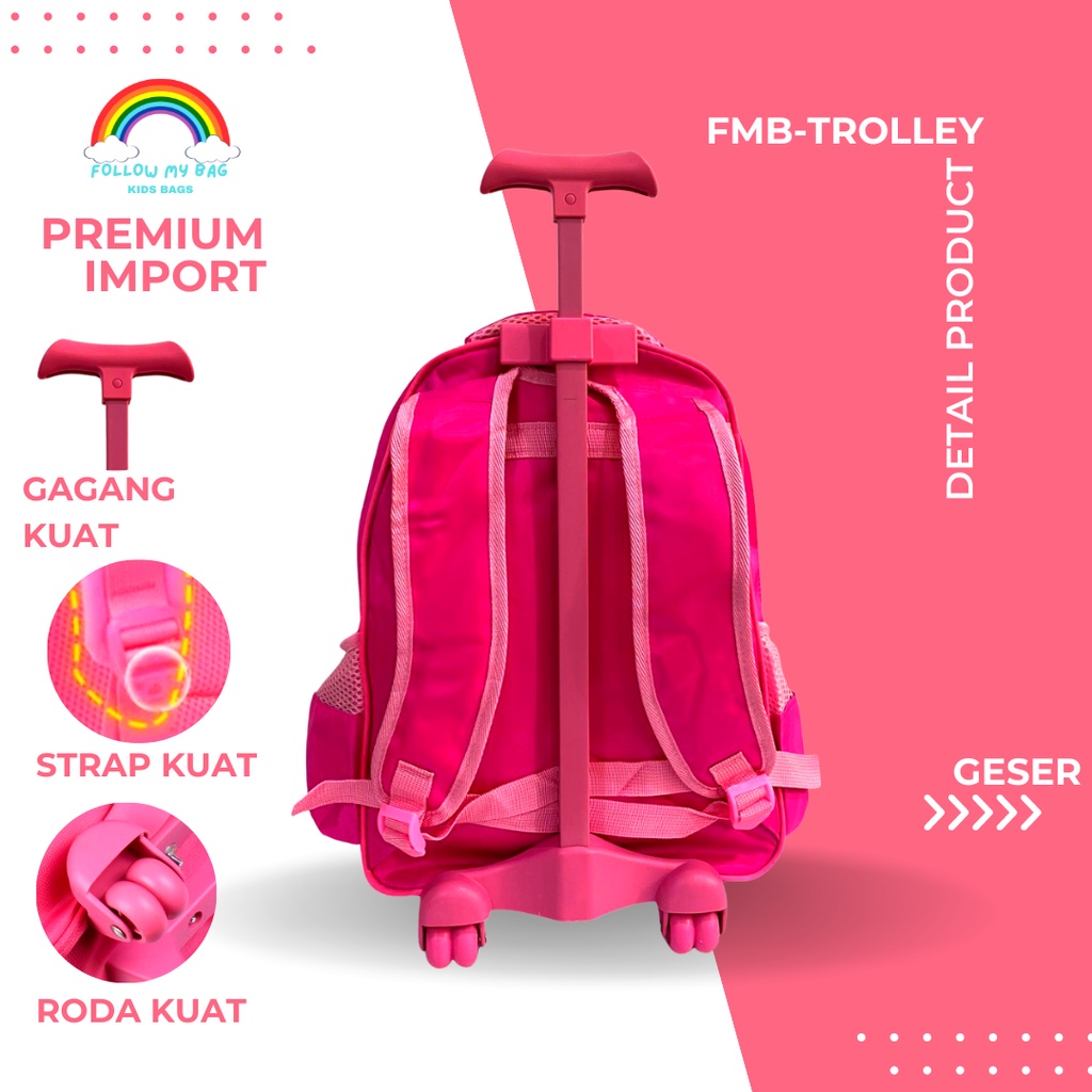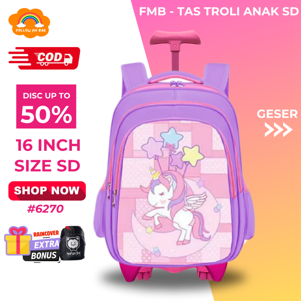 Tas Troli Roda Anak Perempuan Sd Unicorn Timbul - Gratis Raincover- Tas Koper Sekolah Anak Cewek Sd